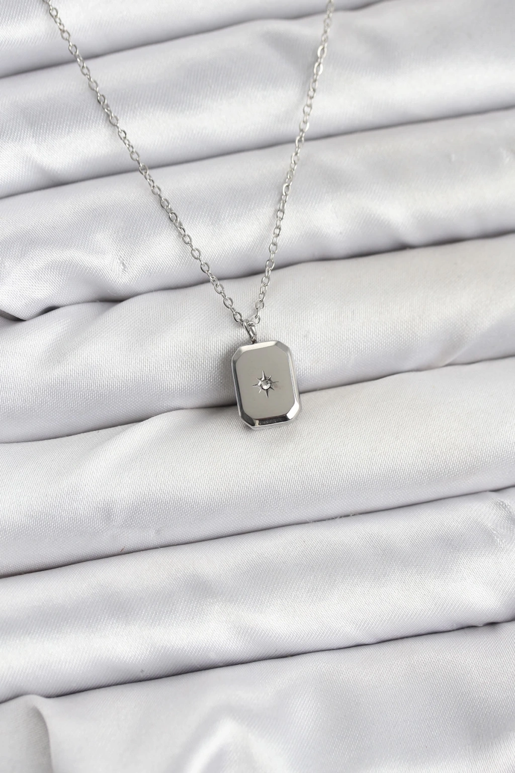 316L Çelik Zincir Gümüş Renk Minimal Kutup Yıldızı Model Kadın Kolye - TJ-BKO10684