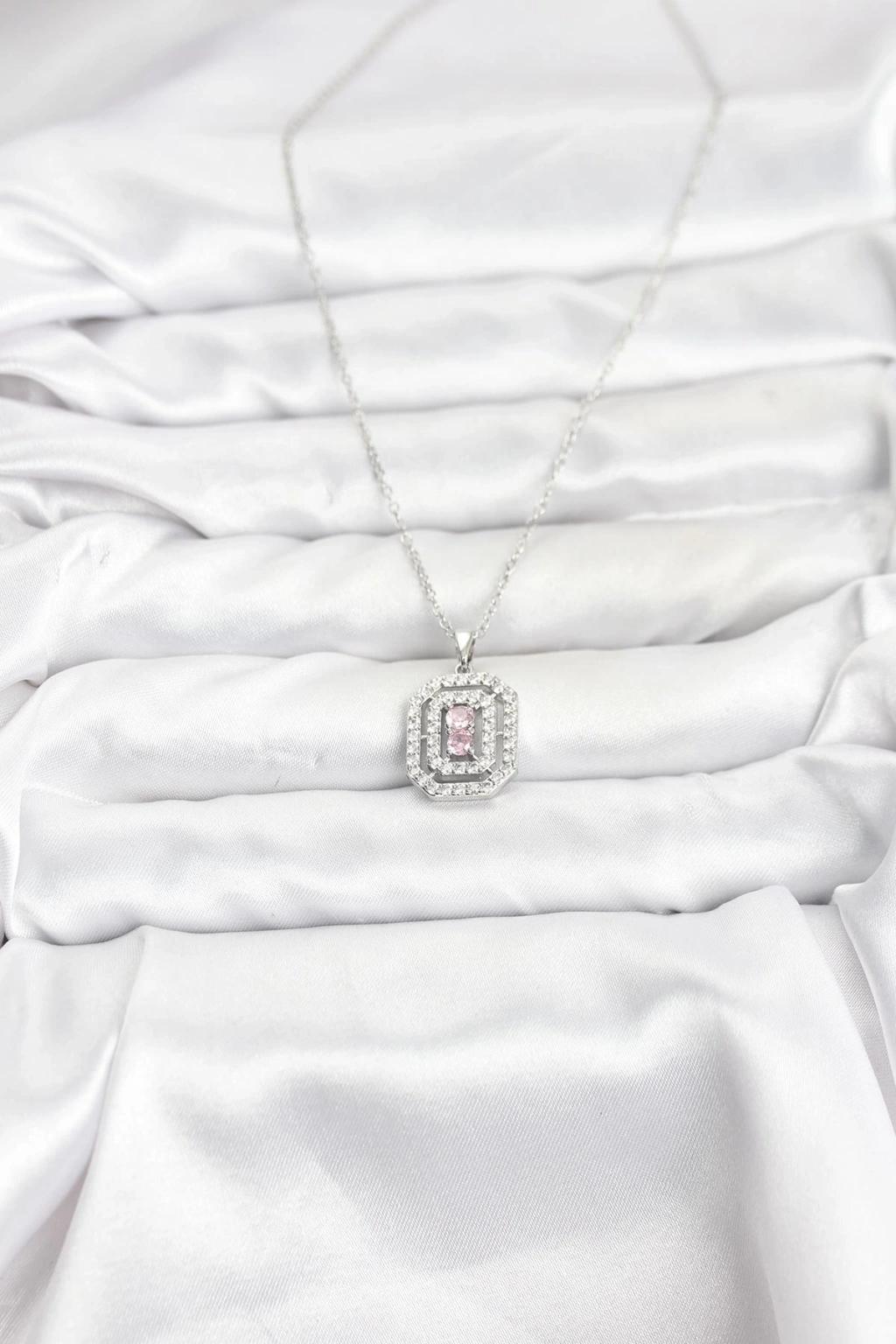 316L Çelik Zincir Gümüş Renk Plaka Model Zirkon Taşlı Kadın Kolye - TJ-BKO10859