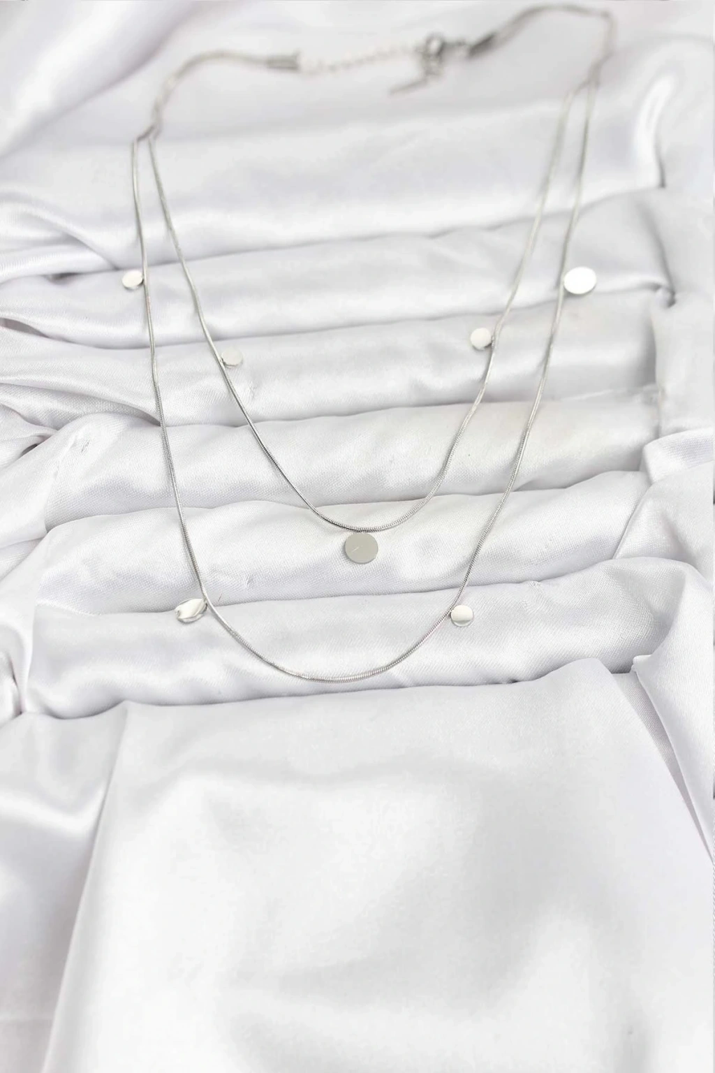 316L Çelik Zincir Gümüş Renk Pullu Kadın Kolye - TJ-BKO10788