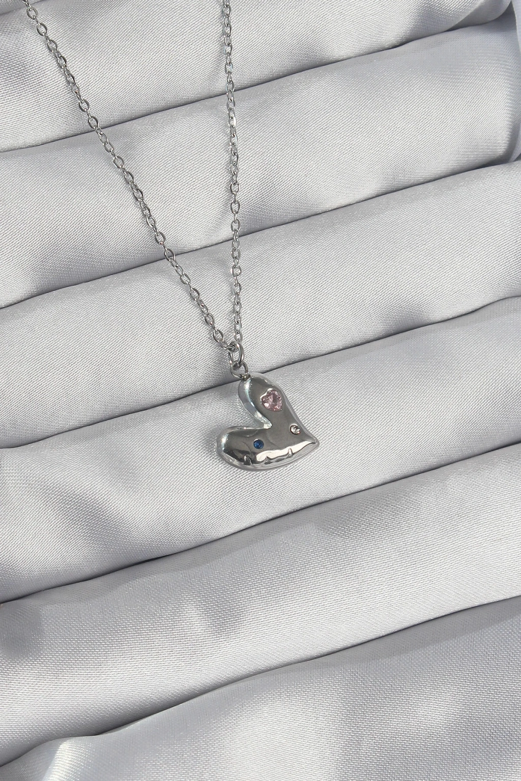316L Çelik Zincir Gümüş Renk Renkli Zirkon Taşlı Kalp Kolye - TJ-BKO8906
