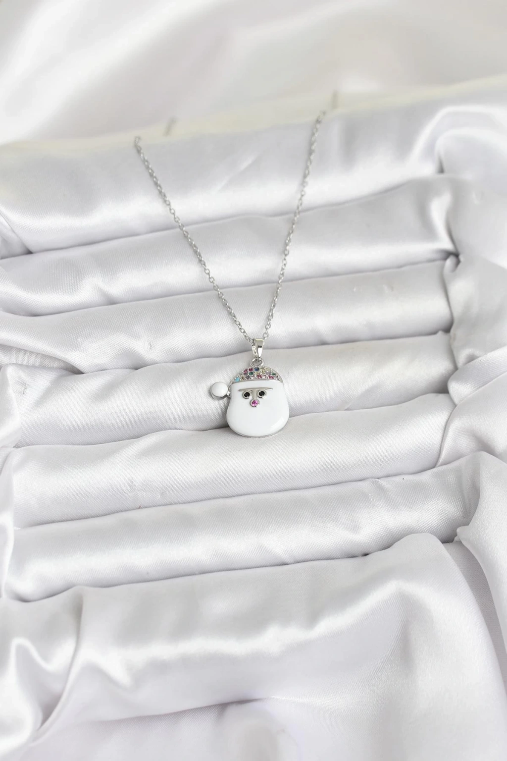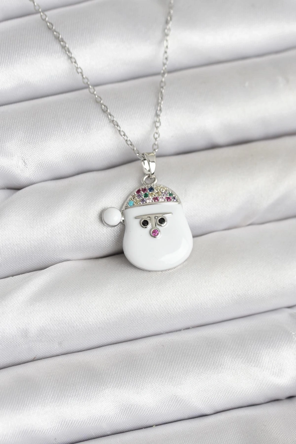 316L Çelik Zincir Gümüş Renk Şapkalı Kardan Adam Kafası Model Yılbaşı Temalı Kadın Kolye - TJ-BKO10705
