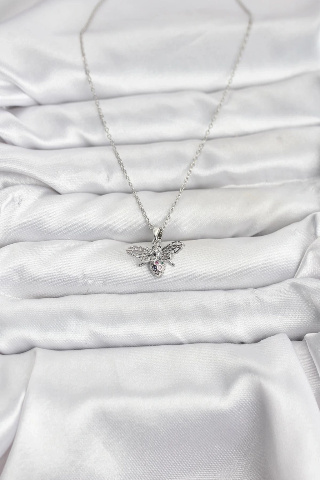 316L Çelik Zincir Gümüş Renk Sinek Model Zirkon Taşlı Kadın Kolye - TJ-BKO10874