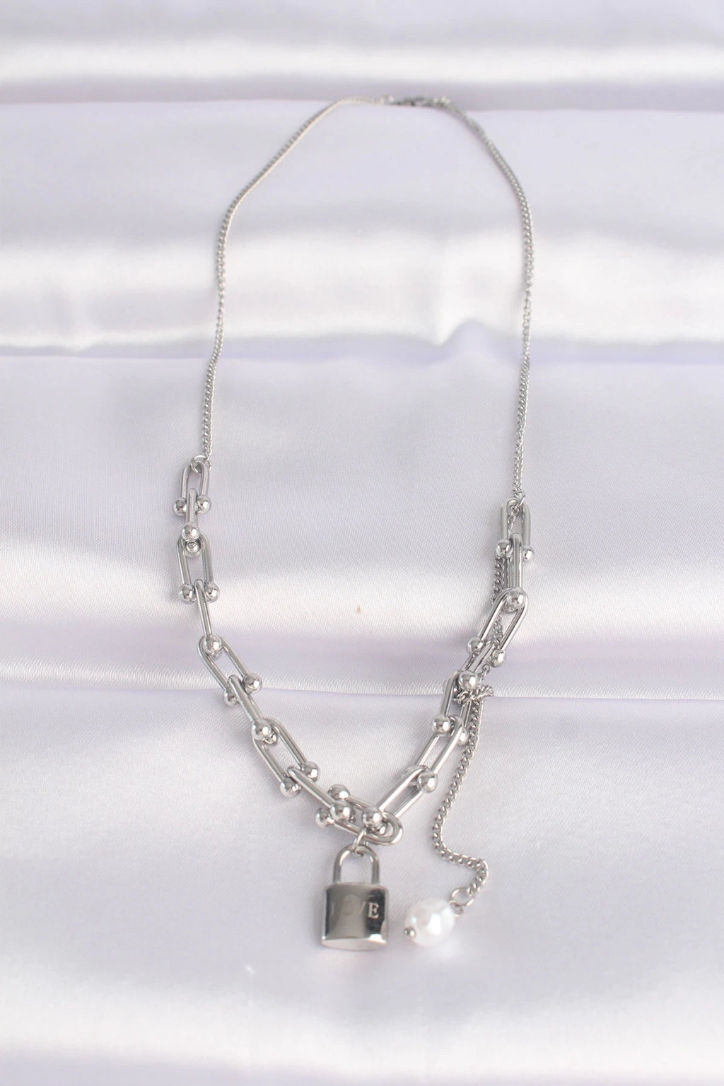 316L Çelik Zincir Gümüş Renk Tiffany Zincirli Love Yazılı Kilit Kolye - TJ-BKO8633
