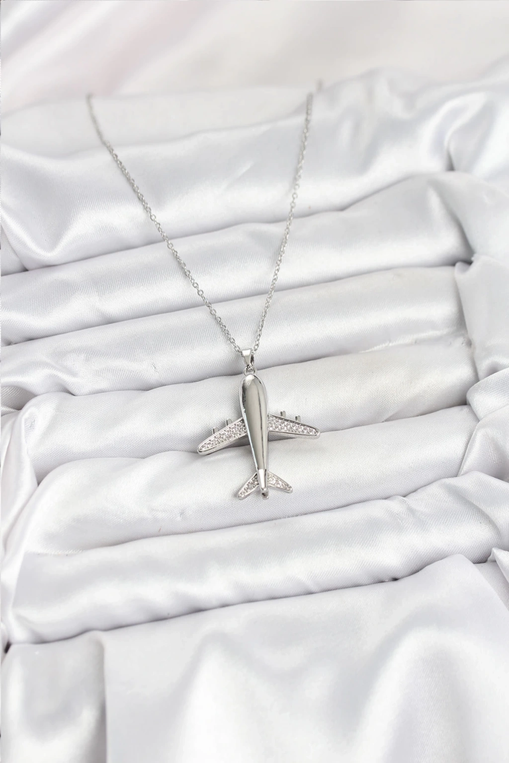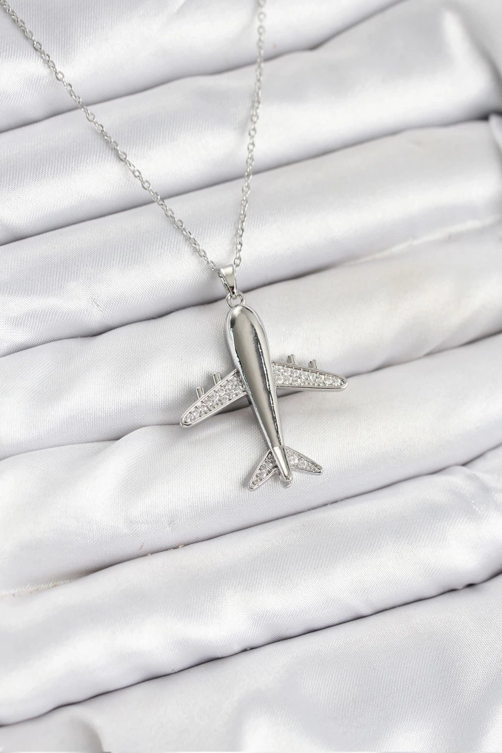316L Çelik Zincir Gümüş Renk Uçak Model Kadın Kolye - TJ-BKO10616