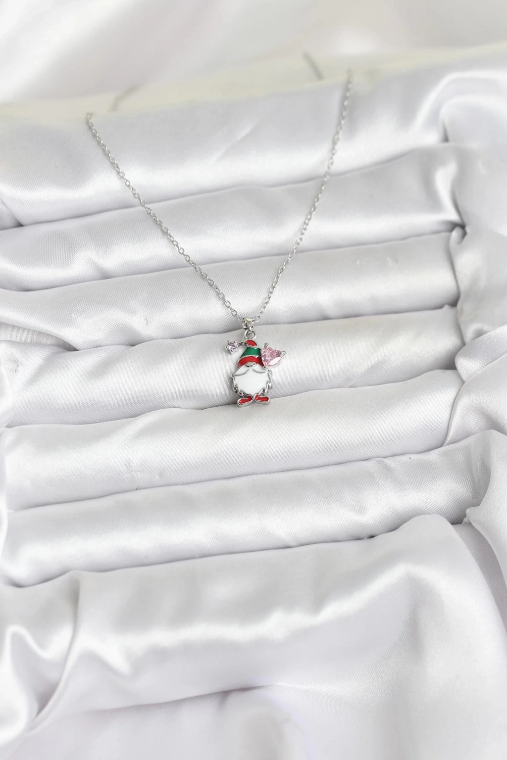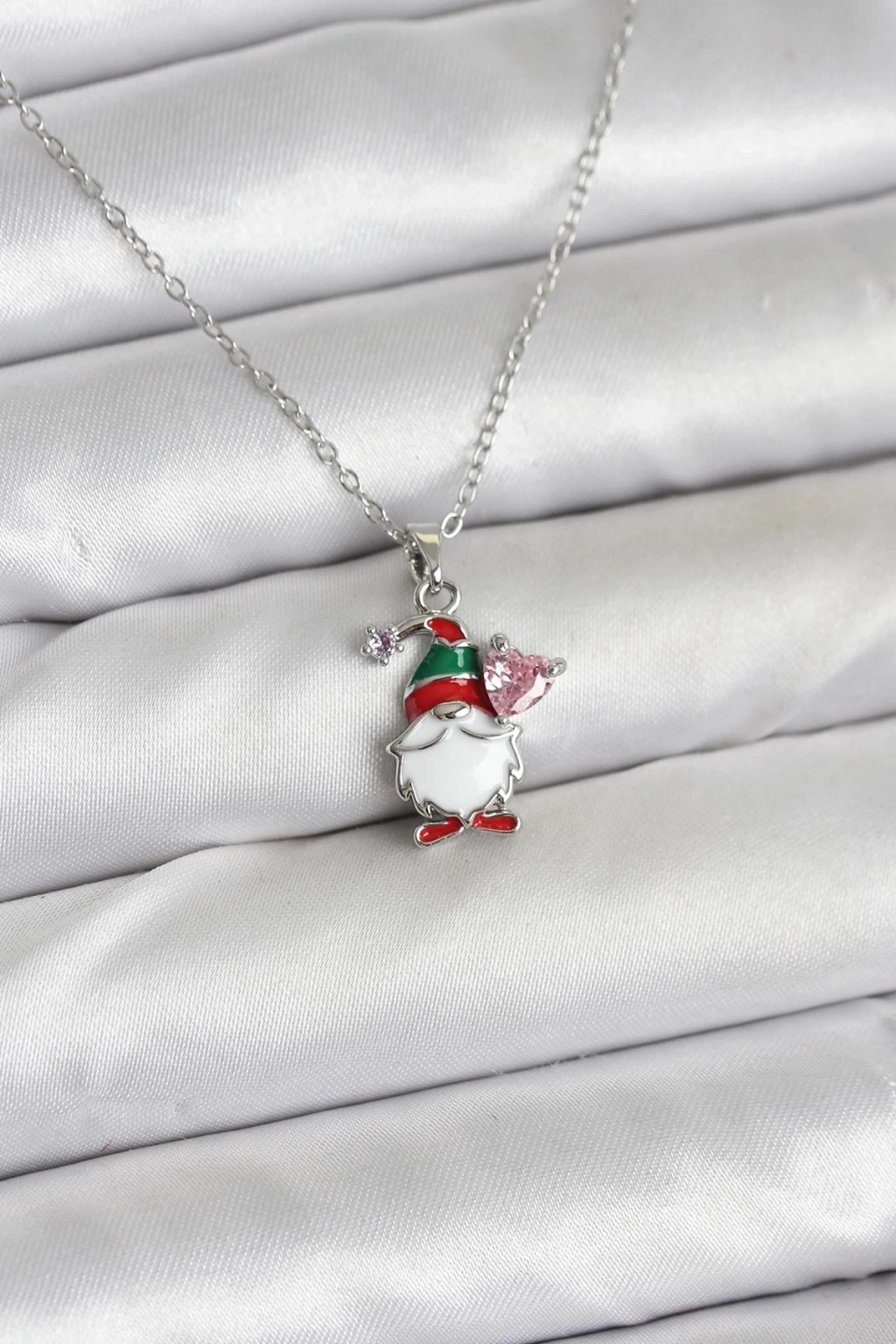 316L Çelik Zincir Gümüş Renk Yılbaşı Teması Kadın Kolye - TJ-BKO10709