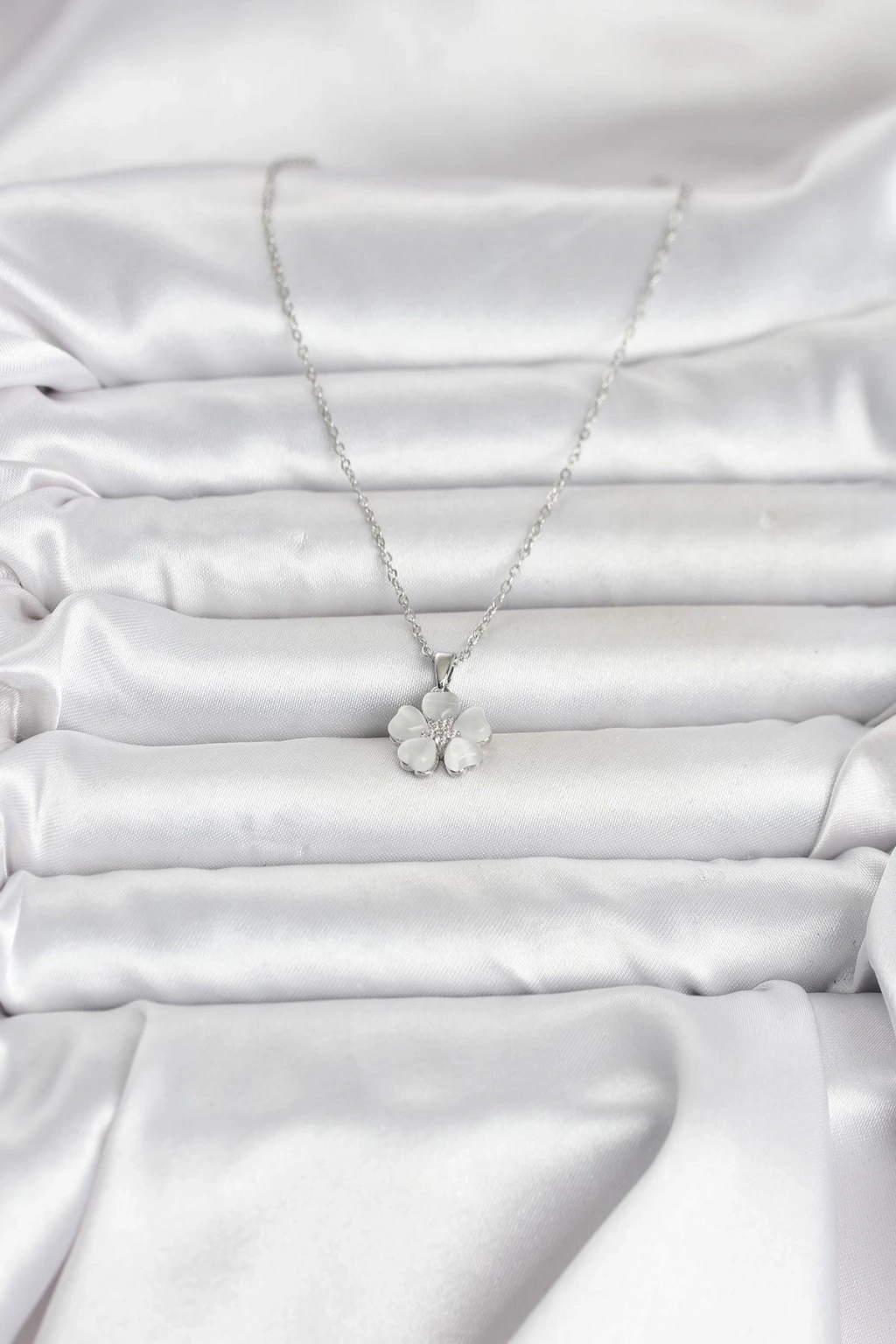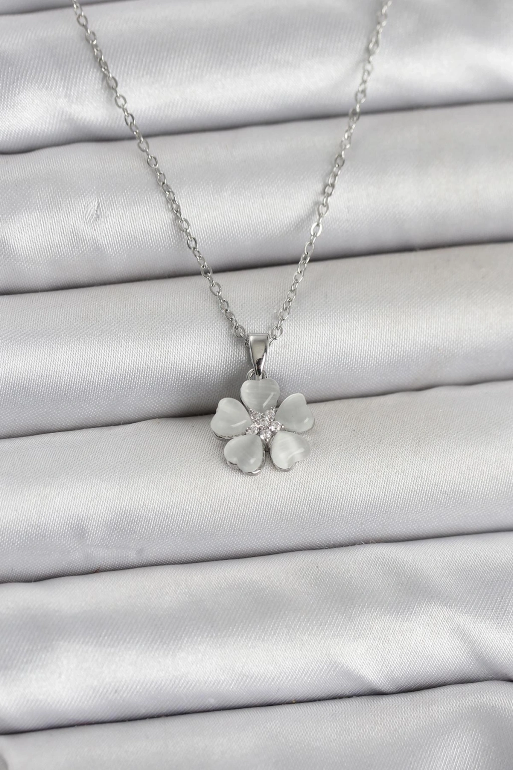 316L Çelik Zincir Gümüş Renk Yonca Model Kadın Kolye - TJ-BKO11021