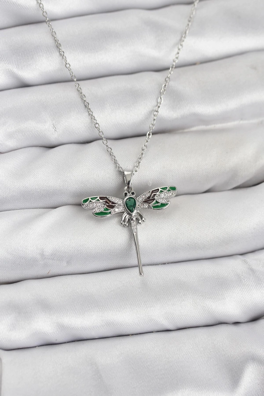 316L Çelik Zincir Gümüş Renk Yusufçuk Model Zirkon Taşlı Kadın Kolye - TJ-BKO10832
