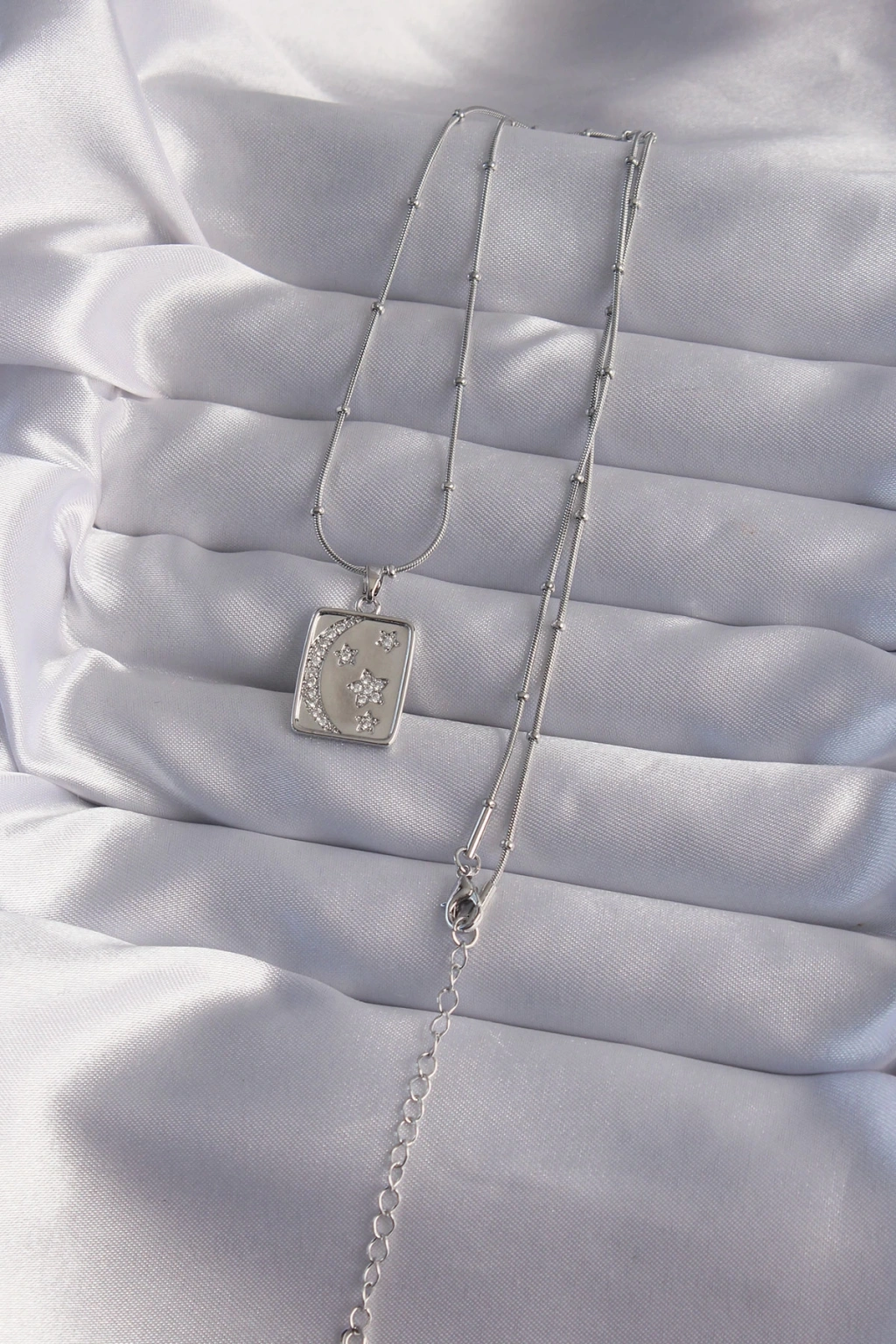316L Çelik Zincir Gümüş Renk Zirkon Taşlı Ay Yıldız Figürlü Tarot Kolye - TJ-BKO9022