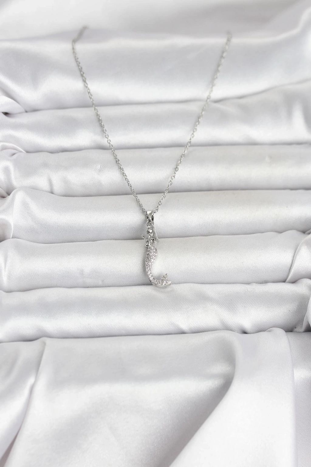 316L Çelik Zincir Gümüş Renk Zirkon Taşlı Deniz Kızı Model Kadın Kolye - TJ-BKO11025