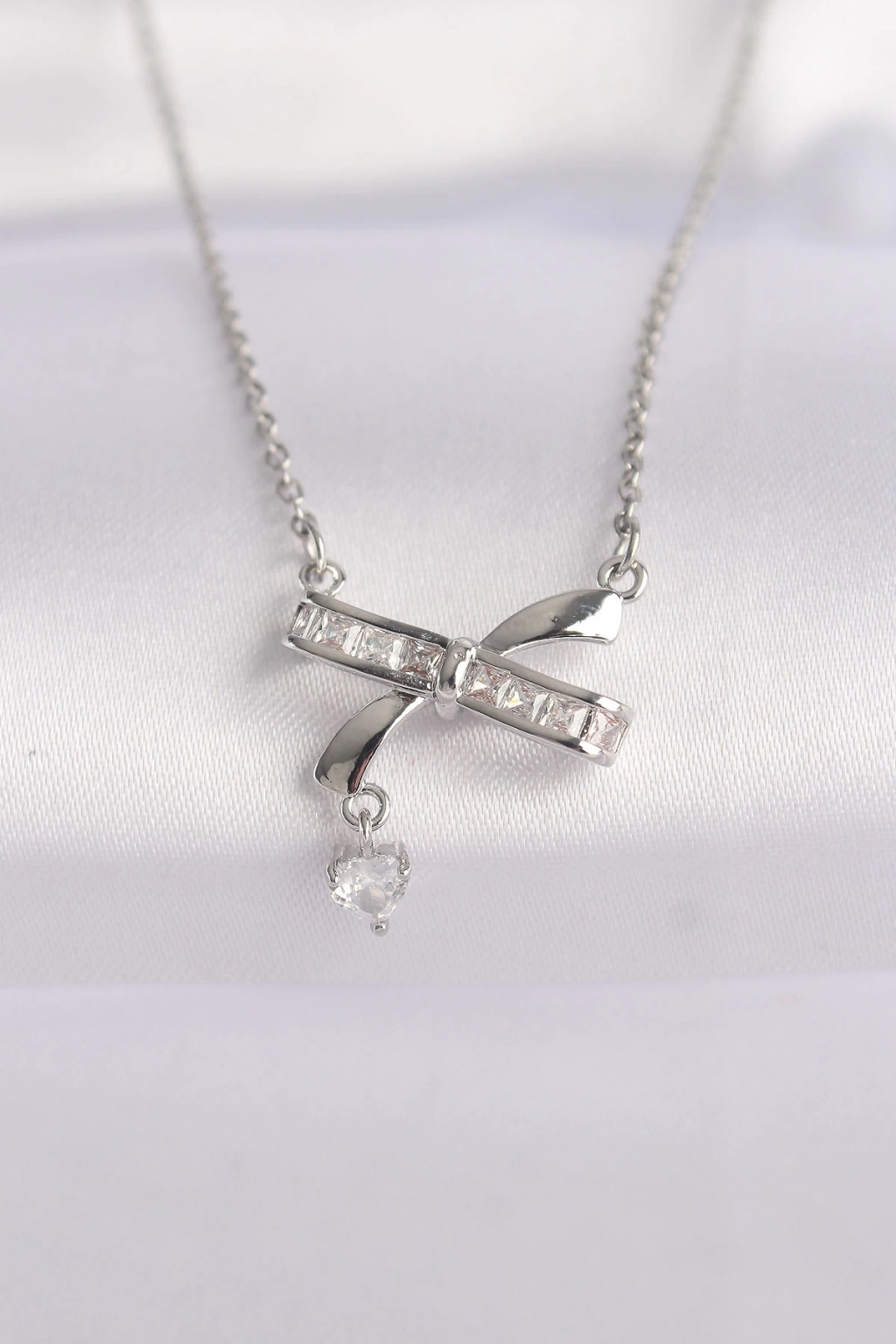 316L Çelik Zincir Gümüş Renk Zirkon Taşlı Kalp Detay Fiyonk Kolye - TJ-BKO8621