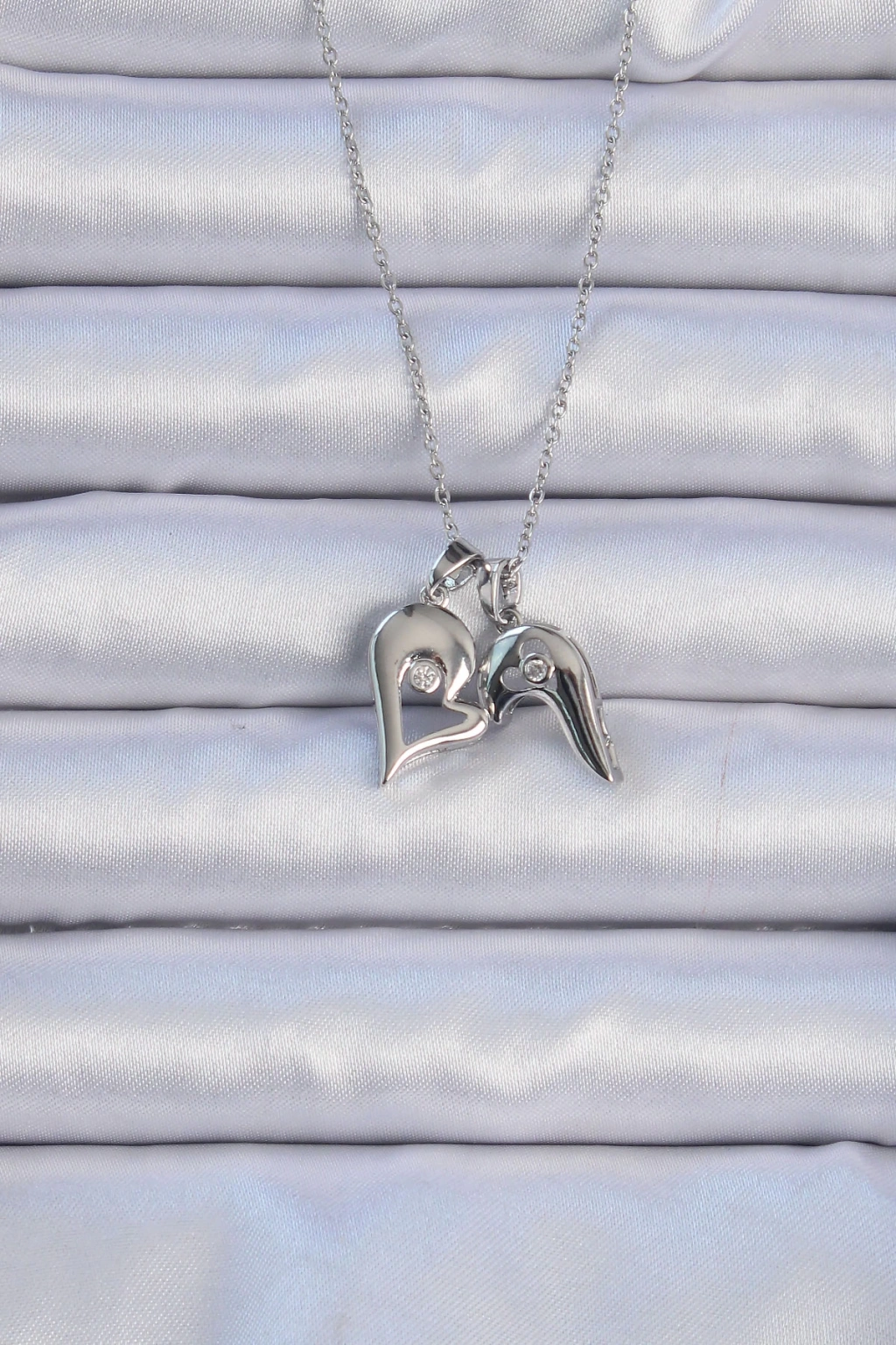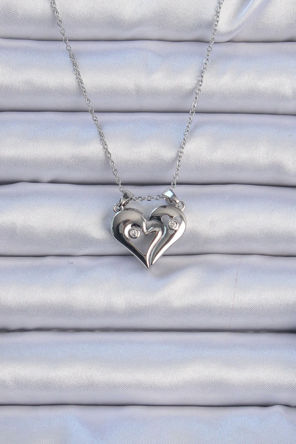 316L Çelik Zincir Gümüş Renk Zirkon Taşlı Mıknatıslı Kalp Kolye - TJ-BKO9082