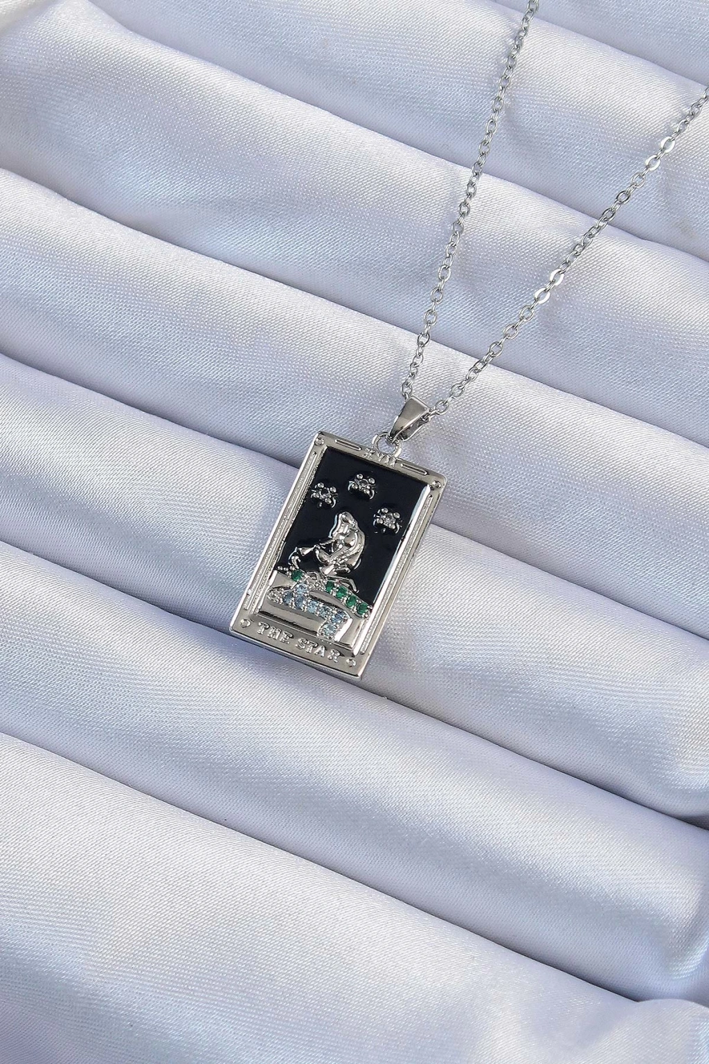 316L Çelik Zincir Gümüş Renk Zirkon Taşlı Siyah Mineli Kız Figürlü Tarot Kolye - TJ-BKO9228