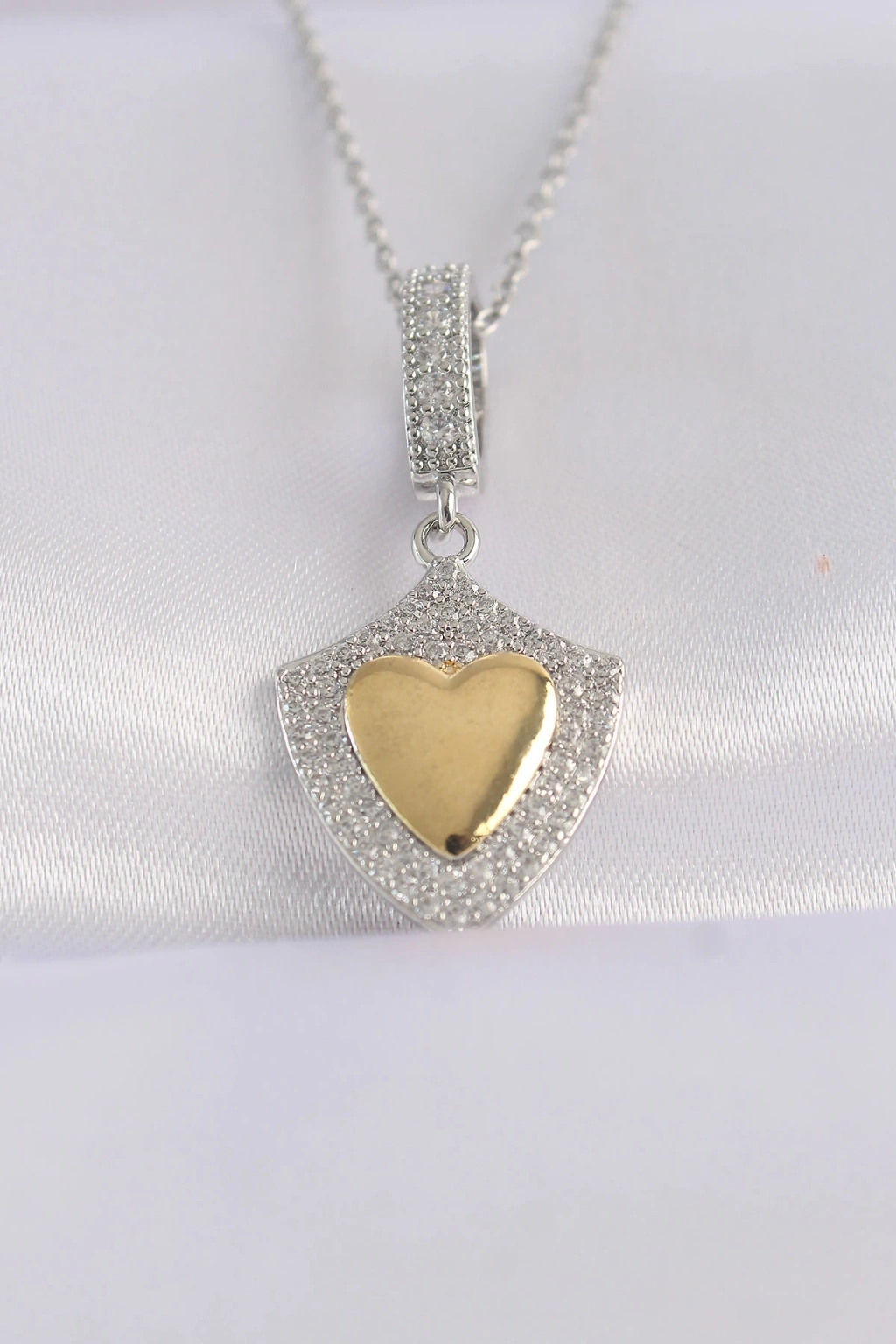 316L Çelik Zincir Gümüş Renk Zirkon Taşlı Tasarım Altın Renk Kalp Kolye - TJ-BKO8661