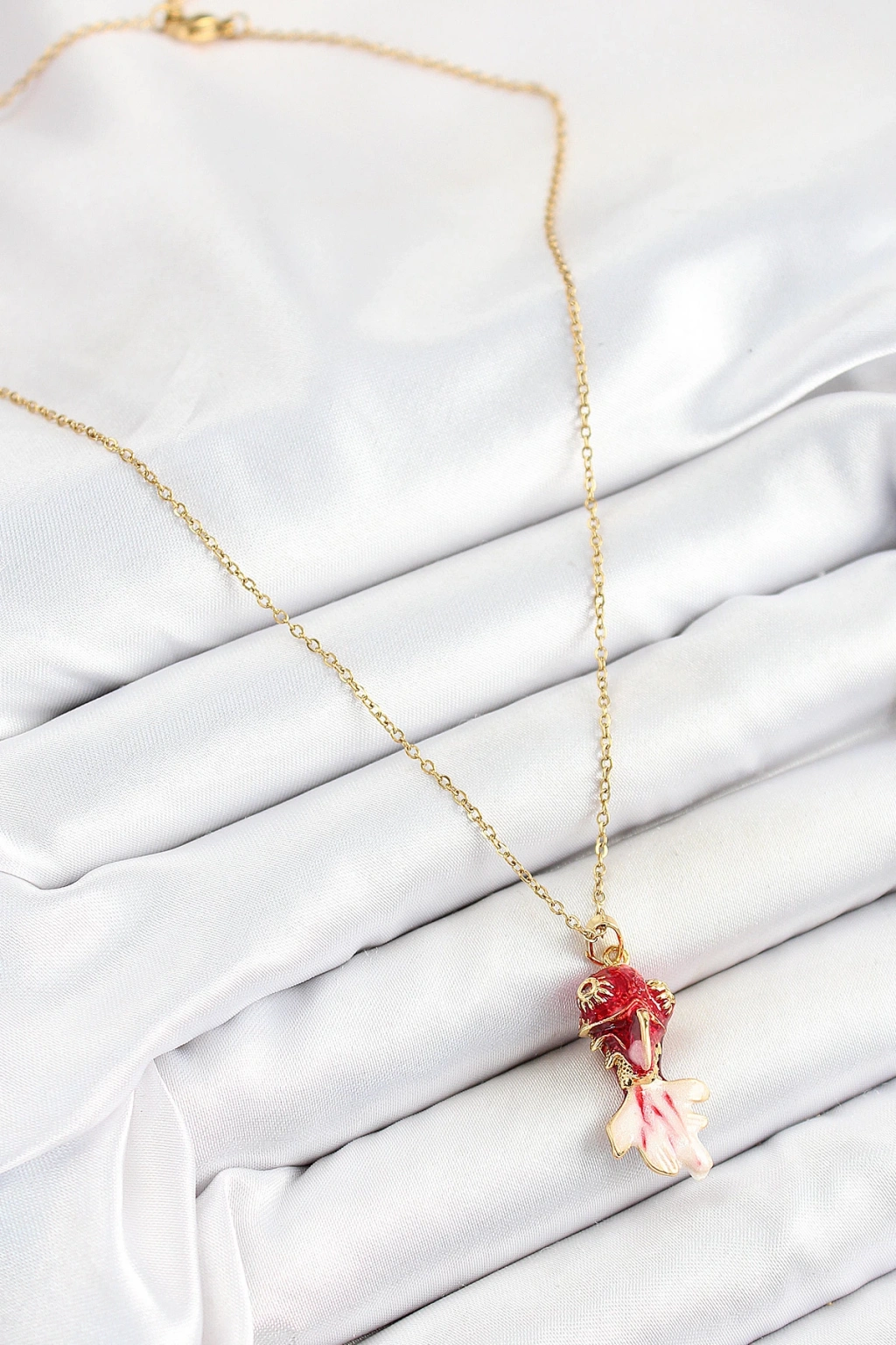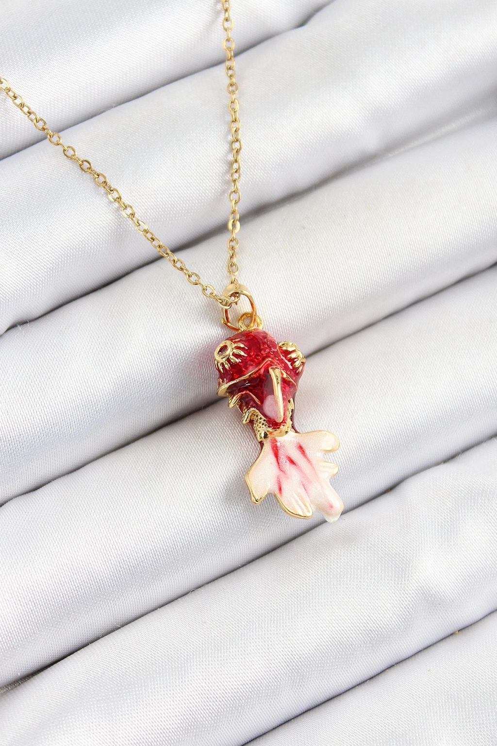 316L Çelik Zincir Kırmızı Balık Model Gold Renk Kadın Kolye - TJ-BKO10325