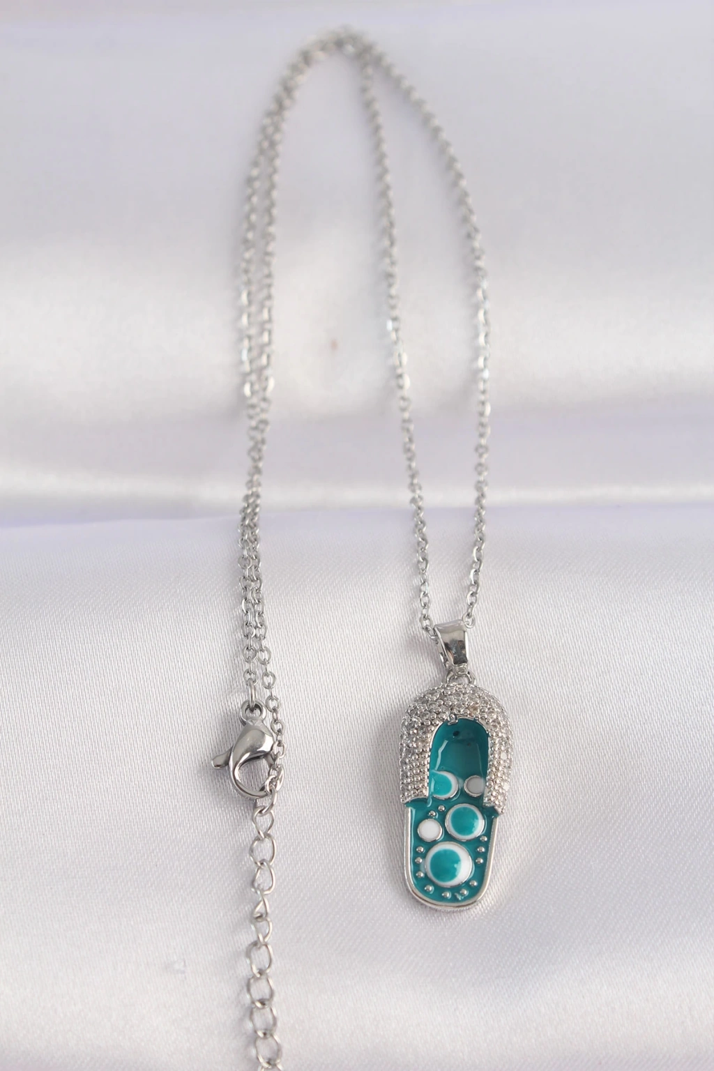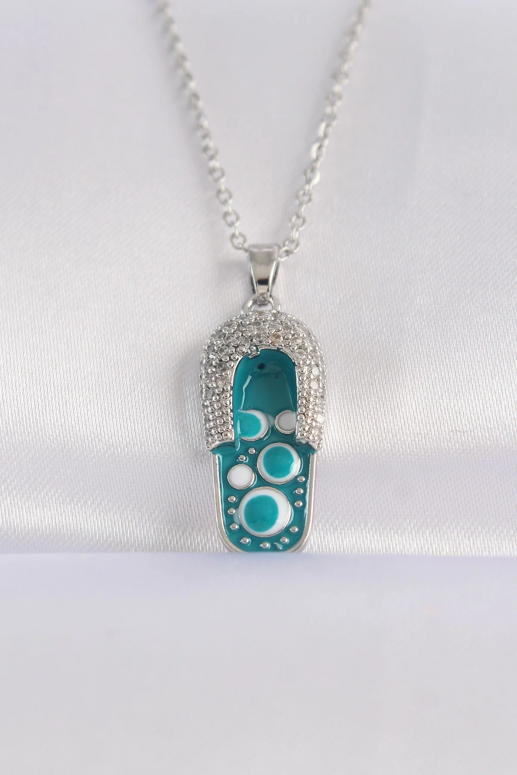 316L Çelik Zincir Zirkon Taşlı Gümüş Renk Nazarlı Terlik Tasarımlı Kolye - TJ-BKO8665