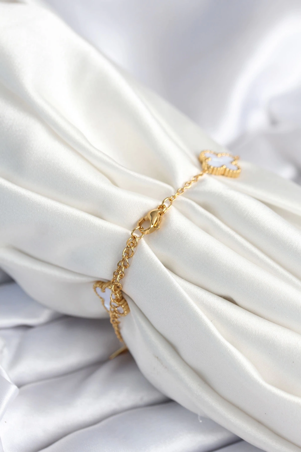 316L Çelik Zincir Zirkon Taşlı Yonca Beyaz Kadın Bileklik - TJ-BB7977