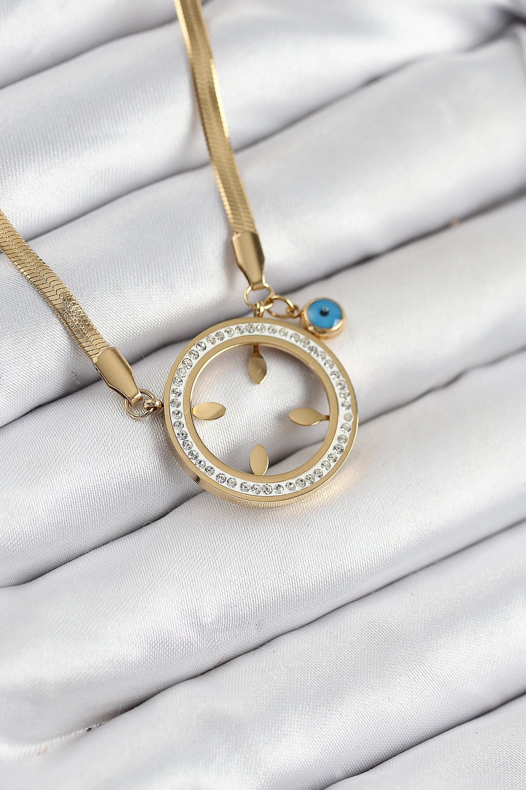 316L Çelik Zirkon Taşlı Çeyrek Takılabilir Gold Renk Kadın Kolye - TJ-BKO10506