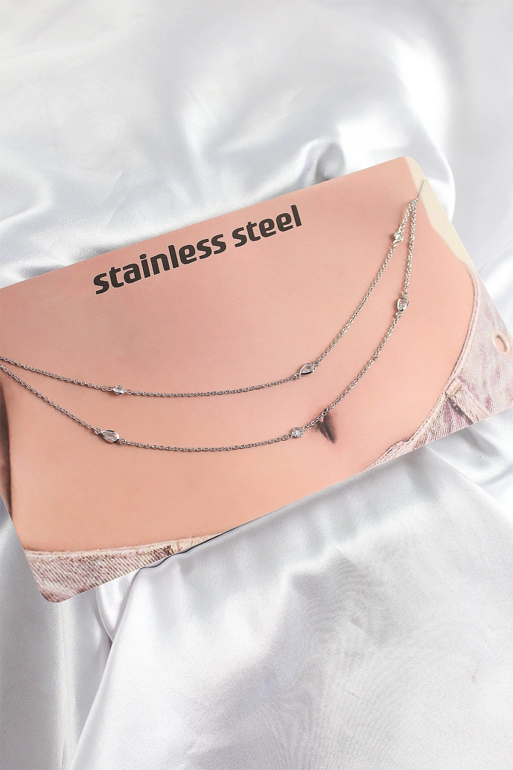 316L Çelik Zirkon Taşlı Damla Model Gümüş Renk Göbek Zinciri - TJ-BKGZ10341