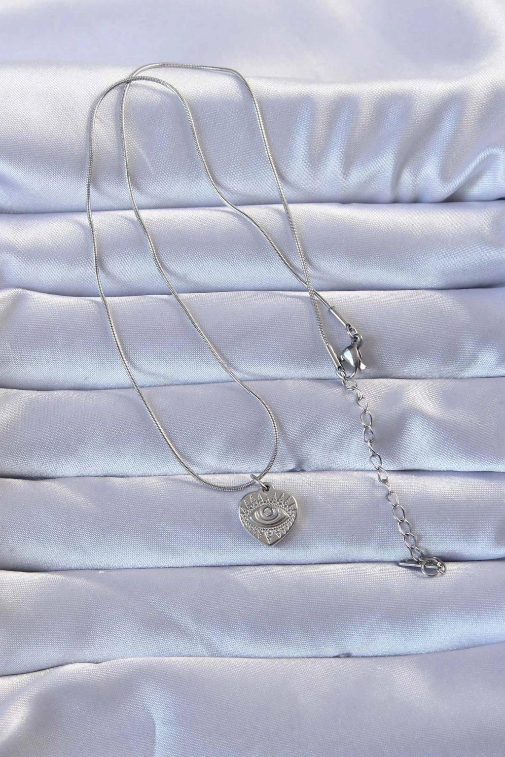 316L Gümüş Renk Zirkon Taşlı İşlemeli Göz Detay Kalp Kolye - TJ-BKO9285
