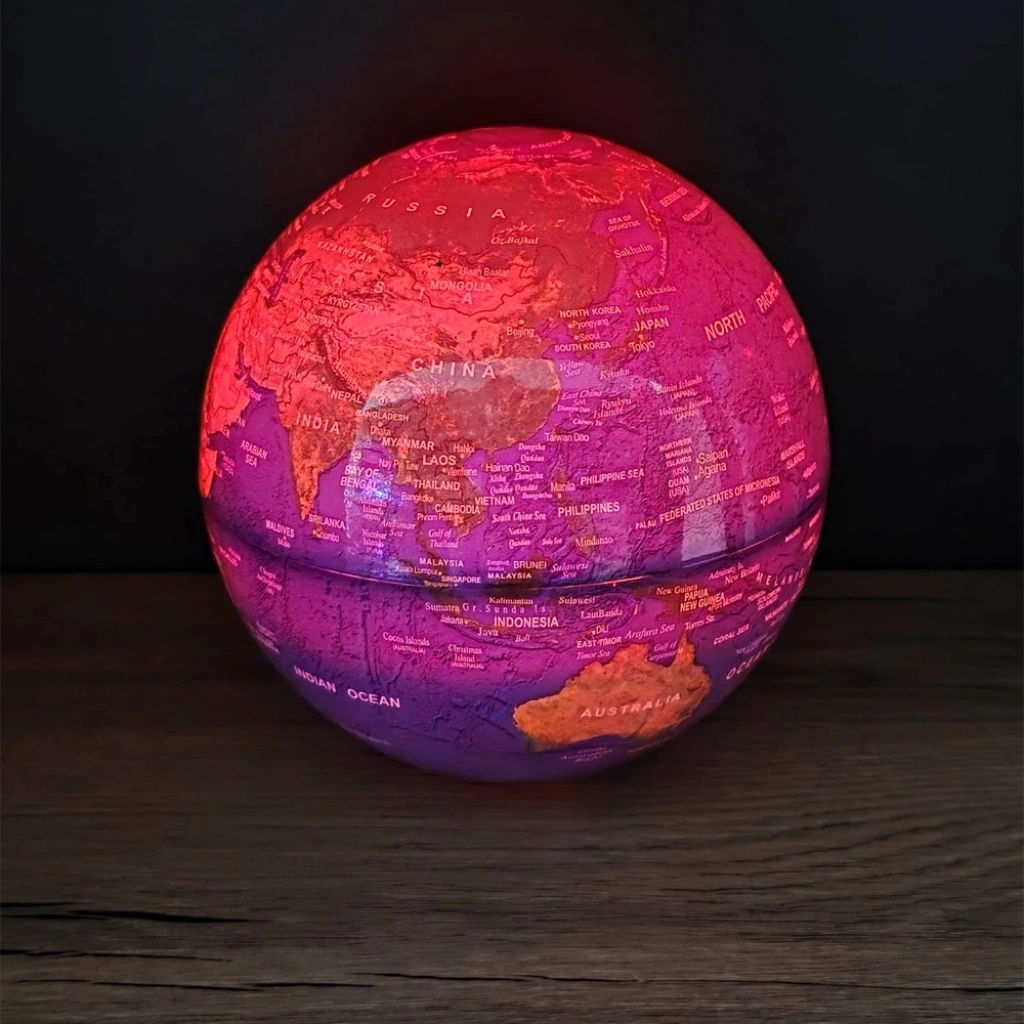 360 DERECE DÖNEN LED IŞIKLI MAVİ DÜNYA KÜRESİ Ürün ÖzellikleriKlasik coğrafya merakını teknolojik bir eğlenceyle buluşturun! LED Işıklı Mavi Dünya Küresi, sadece bir harita değil, aynı zamanda masanızın enerjisini değiştirecek interaktif bir dekorasyon objesidir. 14 cm çapındaki kompakt ve şık tasarımı, yüksek kaliteli sert plastik malzemeden üretilmiştir. Ürünün en dikkat çekici özelliği, düz ve sert bir zemine yerleştirildiğinde 360 derece kendi ekseni etrafında dönebilmesidir. Dönüş sırasında aktifleşen renk değiştiren LED ışık sistemi, okyanus mavisini ve kıta detaylarını büyüleyici bir görselliğe kavuşturur. Net baskı kalitesi sayesinde tüm coğrafi detayları kolayca inceleyebilirsiniz. Kablosuz çalışma özgürlüğü sunan pilli mekanizmasıyla ofis masanızdan gece lambası olarak kullanacağınız komodininize kadar her yere kolayca taşınabilir. Hem çocuklar için öğretici hem de yetişkinler için dinlendirici ve modern bir hediye arayanlar için benzersiz bir tercihtir.Ürün Teknik ÖzellikleriÖzellikAçıklamaÇap Boyutu14 cmMalzemeYüksek Kaliteli Dayanıklı Sert PlastikDönme Özelliği360 Derece Kendi Ekseni Etrafında DönmeIşık ÖzelliğiRenk Değiştiren LED AydınlatmaDönme Güç Kaynağı1 Adet AA Pil (Pakete dahil değildir)Işık Güç KaynağıCR2032 Pil (Mekanizmaya dahildir)Zemin UyumluluğuDüz ve Sert Zeminlerde Sürtünmesiz DönüşBaskı KalitesiYüksek Çözünürlüklü Coğrafi DetaylarPaket İçeriği1 Adet 360 Derece Dönen Mavi Dünya Küresi