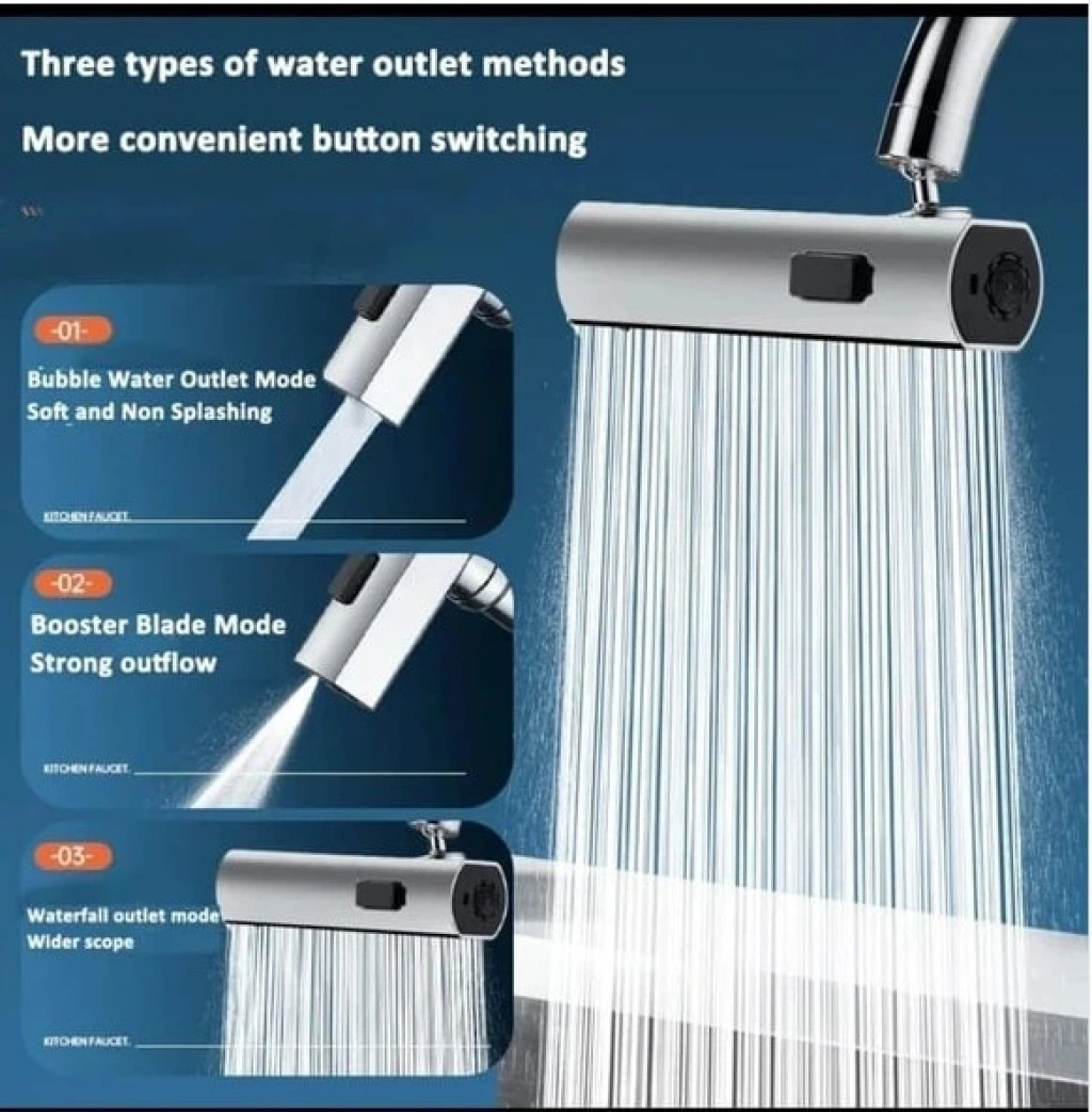 360 Derece Döner Musluk Başlığı - Su Tasarruflu Çok Fonksiyonlu Musluk UcuÜrün Açıklaması:360 Derece Döner Musluk Başlığı ile mutfak ve banyo musluklarınızda su kullanımını optimize edin! Su tasarrufu sağlayan bu çok fonksiyonlu musluk ucu, su akışını iki farklı modda ayarlamanıza olanak tanır: yumuşak köpük akışı ve güçlü sprey modu. 360 derece döner yapısı sayesinde istediğiniz yöne kolayca su yönlendirebilirsiniz. Yüksek kaliteli paslanmaz çelik ve ABS plastik malzemeden üretilmiştir, dayanıklı ve uzun ömürlüdür. Kolay montajı ile her türlü musluğa uyum sağlar ve mutfakta, banyoda veya bahçede kullanım için idealdir. Su tasarrufu yaparken aynı zamanda işlerinizi kolaylaştırın!Paket İçeriği:1 Adet 360 Derece Döner Musluk Başlığı