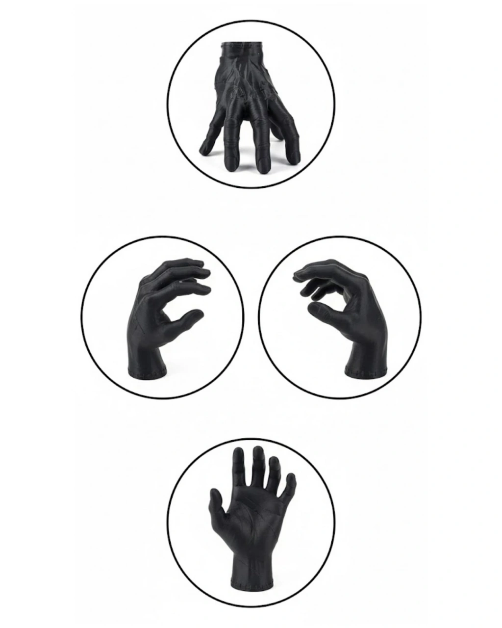 3D Dekoratif Siyah El Obje 17x16 cm, sıradan dekoratif ürünlerden farklı olarak sanatsal ve heykelsi bir form sunar. Güçlü tasarım çizgileri sayesinde bulunduğu alanın enerjisini değiştirir.Konsol üzerinde tek başına sergilenebilir ya da mum, çerçeve ve kitaplarla kombinlenerek es bir dekor kompozisyonu oluşturulabilir. Özellikle minimal dekorasyonlarda modern bir sanat eseri etkisi yaratır.Dayanıklı yapısı sayesinde uzun süre formunu korur. Ev hediyesi olarak da özgün ve unutulmaz bir alternatiftir.