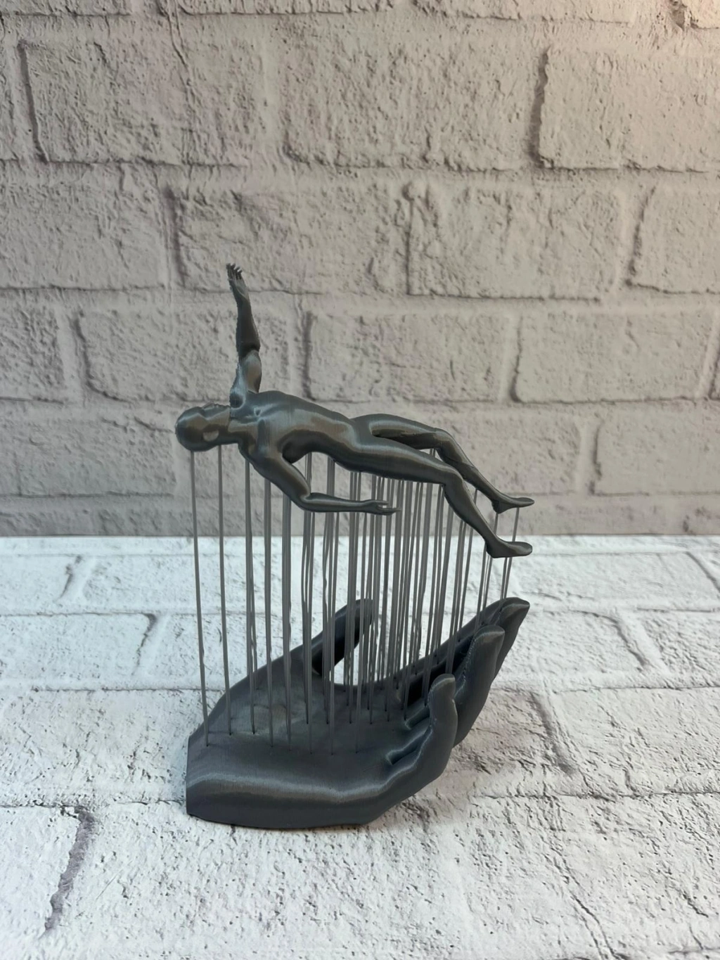 Sanatsal ve modern çizgileri bir araya getiren 3D El İnsan Figürü Gri, yaşam alanlarına sade ama etkileyici bir es kazandırır. El formu üzerinde yükselen insan figürü, soyut ve anlam yüklü tasarımıyla dekorasyonda güçlü bir anlatım sunar. Akışkan yapısı sayesinde bulunduğu ortamda dengeli ve zarif bir duruş sergiler.Gri rengi, açık ve koyu tonlardaki dekorasyonlarla uyum sağlayarak mekânda bütünlük oluşturur. Salon rafları, kitaplık, konsol ya da masa üstünde tek başına sergilendiğinde modern bir odak noktası haline gelir. Minimal ve modern ev dekorasyonu sevenler için şık, zamansız ve karakterli bir dekoratif biblodur.