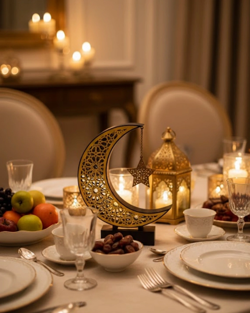 3D Hilal Yıldız Biblo 23x23 cm, zarif tasarımı ve es detaylarıyla bulunduğu ortamda sıcak ve huzurlu bir atmosfer oluşturur. Hilal figürü, kültürel ve manevi anlamı ile dekorasyona derinlik katar.23x23 cm ölçüsü sayesinde masa üstünde fazla yer kaplamadan dikkat çeker. Özellikle iftar sofralarında orta süs olarak kullanıldığında şık bir konsept oluşturur.Altın tonlu detaylar ışıkla birleştiğinde yumuşak bir yansıma sağlar. Bu sayede akşam saatlerinde daha etkileyici bir görünüm sunar.Modern ve geleneksel dekorasyon anlayışını bir arada buluşturan özgün bir tasarım ürünüdür.