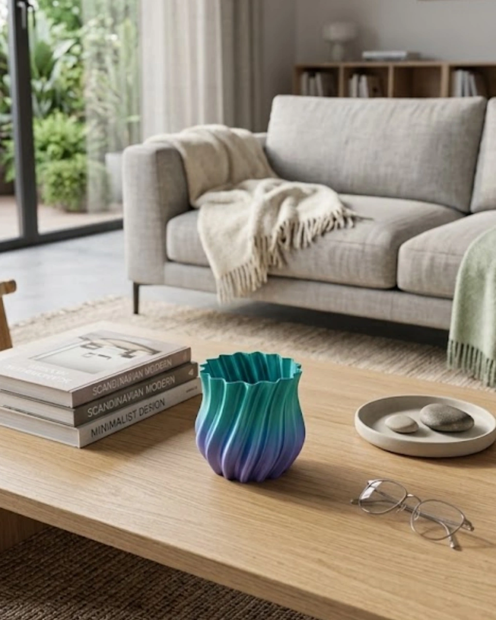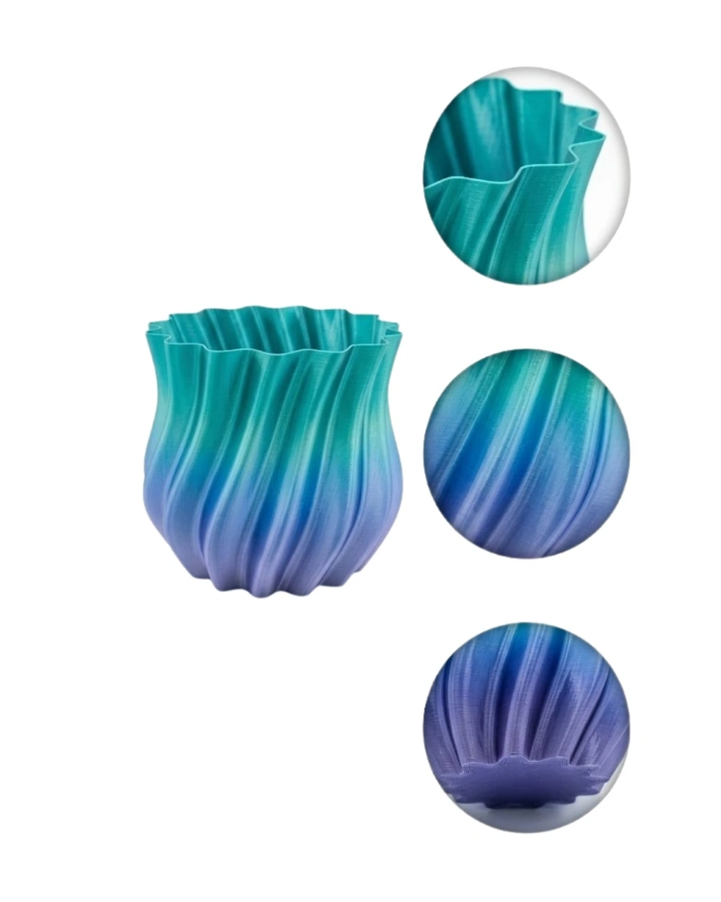 Modern dekorasyon anlayışını yansıtan 3D kıvrımlı mavi vazo, zarif tasarımı ve dikkat çekici renk geçişi ile yaşam alanlarınıza es bir dokunuş kazandırır. Mavi tonlarının derin ve sakinleştirici etkisi, bulunduğu ortama huzurlu bir atmosfer katarken aynı zamanda modern ve şık bir görünüm sunar. Özellikle minimal ve çağdaş dekorasyon tarzlarını benimseyenler için ideal bir tamamlayıcıdır.Ürünün dalgalı ve akışkan yüzey tasarımı, ışık ile etkileşime girerek farklı açılardan farklı tonlar oluşturur. Bu özellik, vazonun bulunduğu ortamda dinamik ve dikkat çekici bir görünüm kazanmasını sağlar. Gün ışığında daha parlak ve canlı bir etki sunarken, akşam saatlerinde daha sofistike ve yumuşak bir ambiyans oluşturur.Kompakt ve kullanışlı boyutu sayesinde küçük alanlarda bile rahatlıkla kullanılabilir. Sehpa, masa, kitaplık veya raf üzerinde konumlandırılarak dekorasyonunuzu tamamlar. Hafif yapısı sayesinde kolay taşınabilir ve farklı alanlarda rahatlıkla kullanılabilir.Bu vazo yalnızca çiçek yerleştirmek için değil, aynı zamanda tek başına dekoratif bir obje olarak da oldukça güçlü bir etki yaratır. Kurutulmuş çiçekler, pampas veya yapay bitkiler ile birlikte kullanıldığında görsel etkisi daha da artar. Aynı zamanda sosyal medya içerikleri ve es fotoğraf çekimleri için de oldukça uygundur.