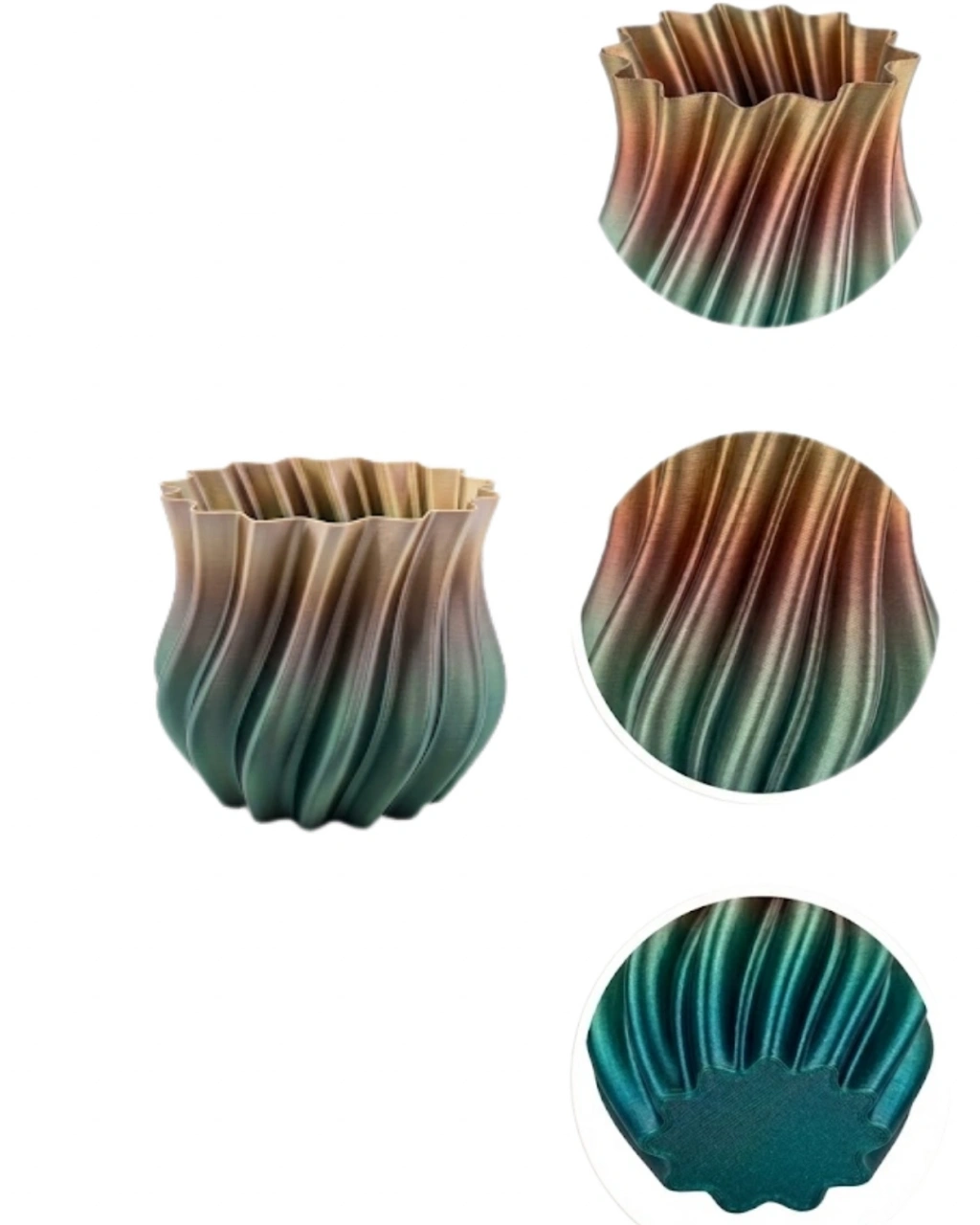 Modern dekorasyon anlayışını yansıtan 3D kıvrımlı siyah metalik vazo, şık tasarımı ve premium görünümü ile yaşam alanlarınıza sofistike bir dokunuş kazandırır. Koyu tonların güçlü ve etkileyici yapısı, bulunduğu ortama derinlik katarken aynı zamanda modern ve lüks bir atmosfer oluşturur. Minimal ve çağdaş dekorasyon tarzlarını benimseyenler için ideal bir tamamlayıcıdır.Ürünün dalgalı ve akışkan yüzey tasarımı, ışık ile etkileşime girerek farklı açılardan farklı tonlar oluşturur. Metalik yüzey dokusu, gün ışığında hafif parlak yansımalar sunarken, loş ışıkta daha derin ve gizemli bir görünüm sağlar. Bu sayede bulunduğu ortamda dikkat çekici bir odak noktası haline gelir.Kompakt boyutu sayesinde küçük alanlarda bile rahatlıkla kullanılabilir. Sehpa, masa, kitaplık veya çalışma alanlarında dekoratif obje olarak konumlandırılabilir. Hafif yapısı sayesinde kolay taşınabilir ve farklı dekorasyon düzenlerine uyum sağlar.Bu vazo yalnızca çiçek yerleştirmek için değil, aynı zamanda tek başına dekoratif bir obje olarak da güçlü bir etki yaratır. Kurutulmuş çiçekler, dekoratif dallar veya minimal bitkiler ile birlikte kullanıldığında es görünümü daha da ön plana çıkar. Özellikle modern ofis dekorasyonu için de oldukça şık bir tercihtir.