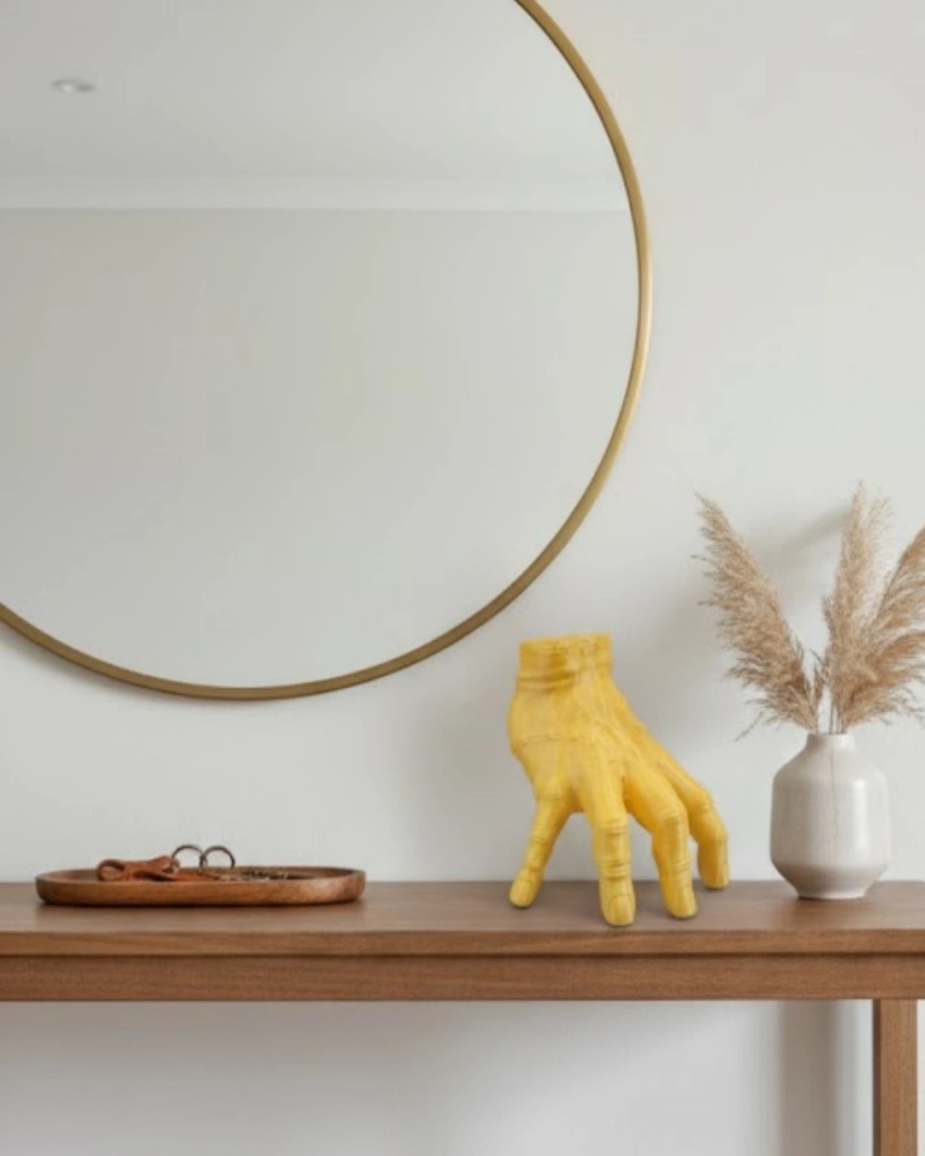 3D Modern Sarı El Biblo 17x16 cm, sıradan aksesuarların ötesine geçmek isteyenler için tasarlanmıştır. Sanatsal formu ve detaylı yüzey yapısı sayesinde bulunduğu ortamda sofistike bir vurgu oluşturur.Raf sistemlerinde, TV ünitesi üzerinde, çalışma masasında veya komodin üstünde rahatlıkla kullanılabilir. Kompakt yapısı sayesinde dar alanlarda bile rahatça konumlandırılabilir.Dayanıklı yapısı uzun süreli kullanım sağlar. Modern ve çağdaş dekorasyon anlayışına sahip kullanıcılar için es bir tamamlayıcıdır.