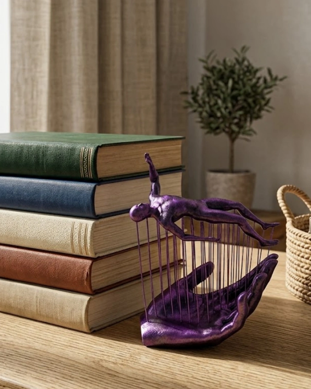 Sanat ve modern tasarımın birleştiği bu 3D insan figürü, dekorasyonuna özgün bir dokunuş katmak isteyenler için özenle hazırlanmıştır. Mor renk tonlarının kullanıldığı bu özel tasarım, hem dikkat çekici hem de es bir görünüm sunar.Üç boyutlu yapısı sayesinde ürün, bulunduğu ortamda derinlik ve hareket hissi oluşturur. Figürün dinamik duruşu, tasarıma modern ve enerjik bir hava katar. Bu özellik, ürünü sıradan dekoratif objelerden ayırır ve bulunduğu alanda odak noktası haline getirir.Kompakt ve kullanışlı boyutu sayesinde farklı alanlarda rahatlıkla kullanılabilir. Çalışma masası, kitaplık, sehpa veya raf üzerinde şık bir görünüm oluşturur. Ayrıca duvar dekoru olarak da tercih edilebilir.Ürün, dayanıklı yapısı sayesinde uzun süreli kullanım sunar. Hafif olması sayesinde kolay taşınır ve farklı alanlarda konumlandırılabilir.Modern dekorasyon tarzını benimseyen kullanıcılar için ideal bir seçimdir. Minimal detaylarla maksimum etki yaratmak isteyenler için tasarlanmıştır.