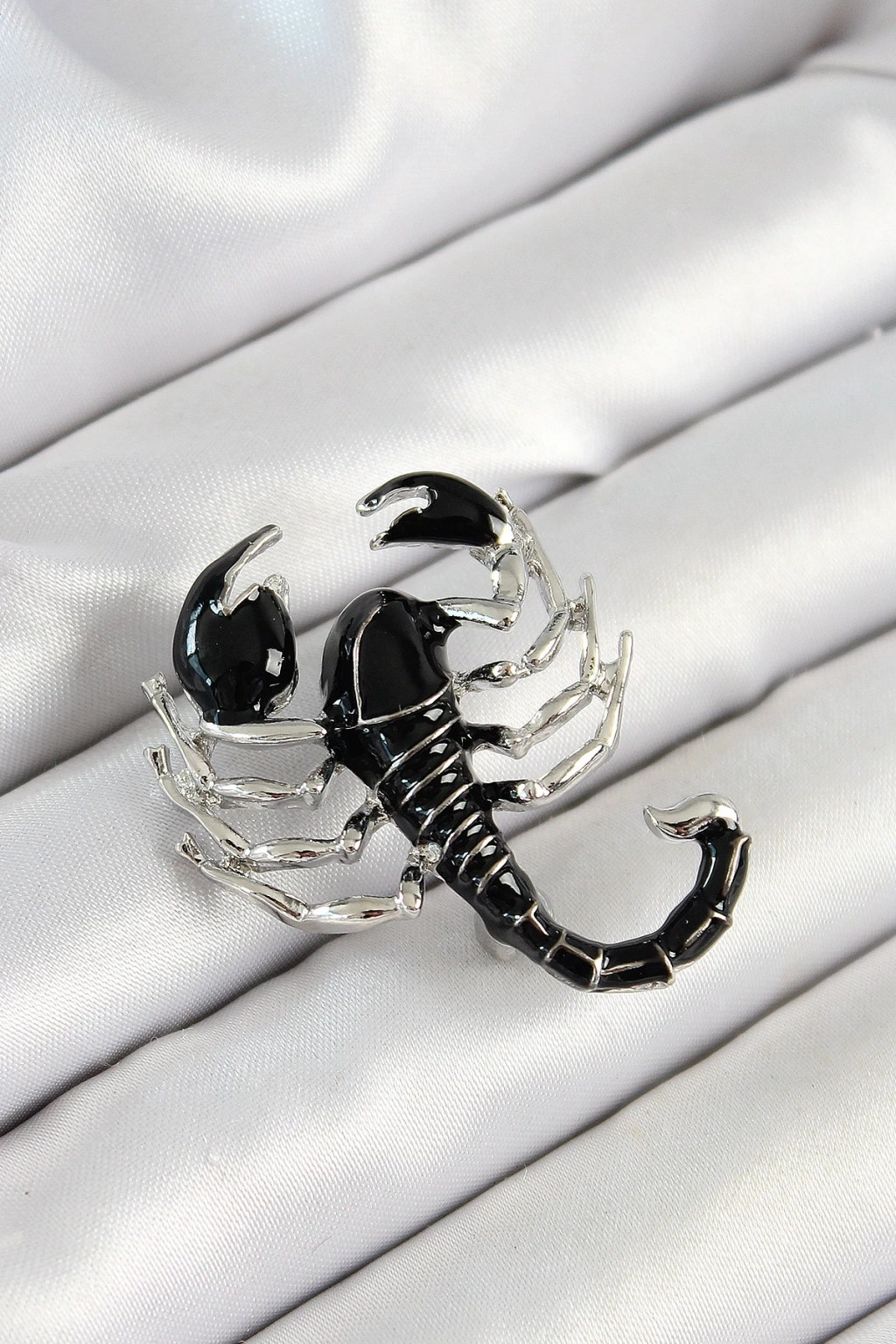 3D Siyah Akrep Figürlü Gümüş Renk Kadın Broş - TJ-BR439