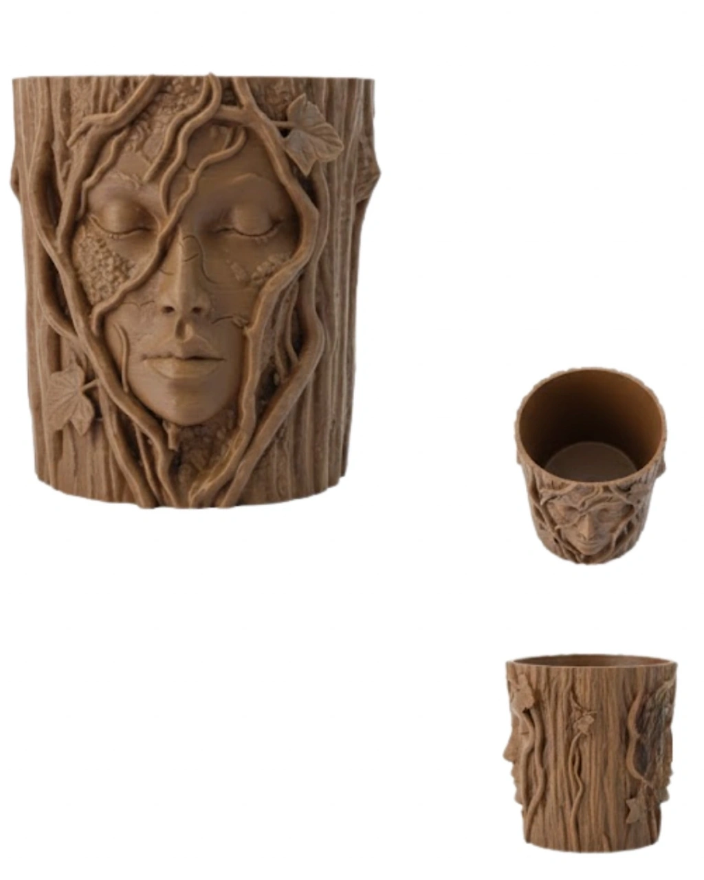 Üç boyutlu yüz kabartması ve ağaç formu tasarımıyla sıradan saksı anlayışını tamamen değiştiren bu ürün, sanatsal bir dekorasyon parçasıdır. Doğal tonları sayesinde bulunduğu ortama sıcaklık katar.Salon, vitrin, kitaplık ya da meditasyon alanlarında güçlü bir görsel etki oluşturur.