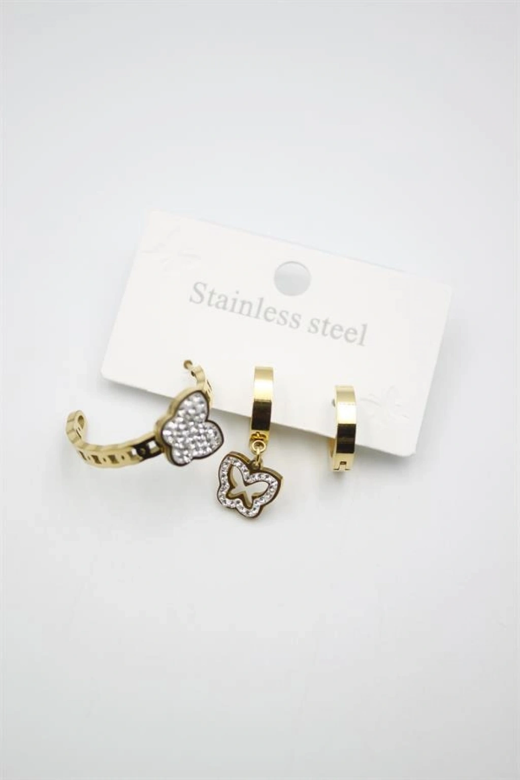 3'lü Kelebek Küpe - Altın