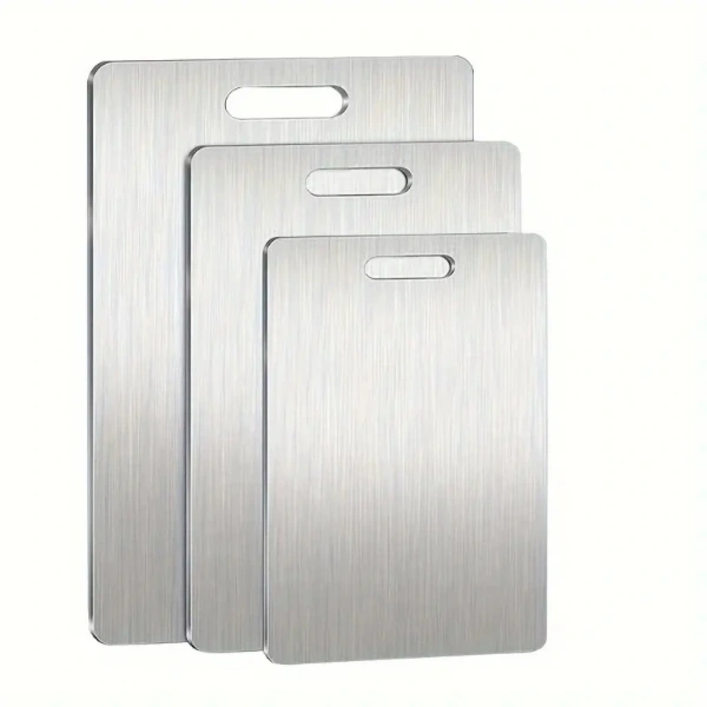 3'LÜ PASLANMAZ ÇELİK KESME TAHTASI SETİ Ürün ÖzellikleriPaslanmaz çelikten üretilmiş olan bu kesme tahtası seti, mutfağınız için ideal bir seçimdir. 3 farklı boyutta sunulan tahtalar, her ihtimale karşı kullanım kolaylığı sağlar. Leke tutmaz, sağlıklıdır ve hijyenik özelliklere sahiptir. Ayrıca paslanmaz özelliği sayesinde uzun ömürlüdür ve yıllarca kullanılabilir.Kesme tahtaları antibakteriyel özelliklere sahip olup, gıda zehirlenmesini önler. Elde veya bulaşık makinasında kolayca yıkanabilir. Farklı boyut seçenekleriyle, sebze, meyve, et gibi farklı malzemeleri rahatça kesebilirsiniz.Paket İçeriği1 Adet 33 x 22.5 cm Boyutunda Paslanmaz Çelik Kesme Tahtası1 Adet 28 x 19.5 cm Boyutunda Paslanmaz Çelik Kesme Tahtası1 Adet 24.5 x 15 cm Boyutunda Paslanmaz Çelik Kesme Tahtası