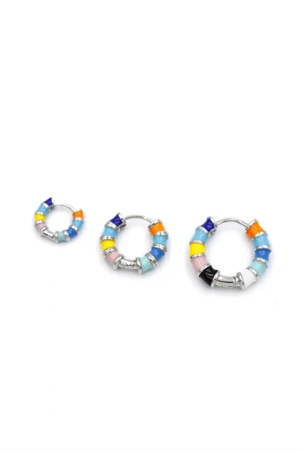 3'lü Renkli Halka Küpe - Gümüş
