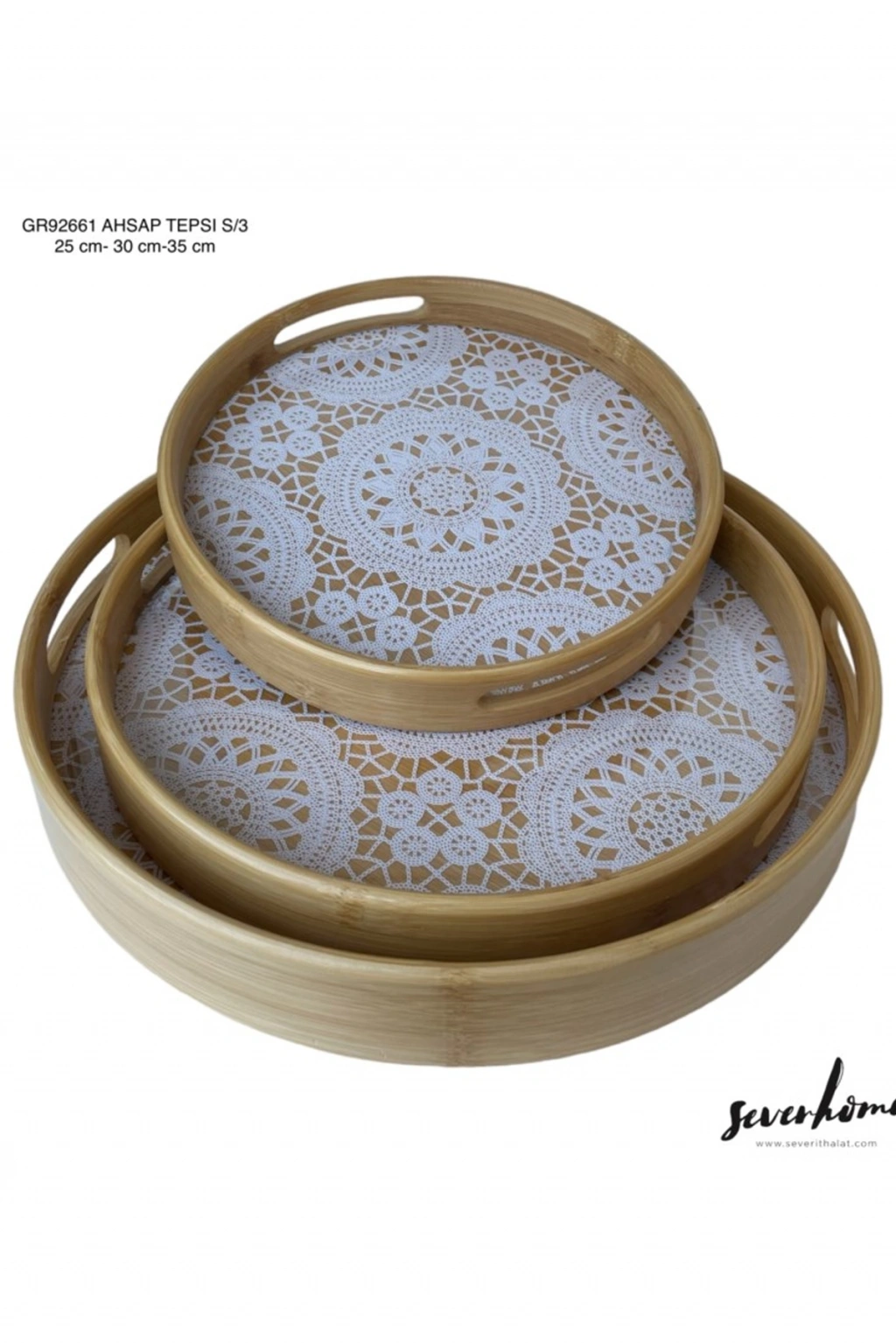3'lü Yuvarlak Ahşap Tepsi -SVR-GR92661