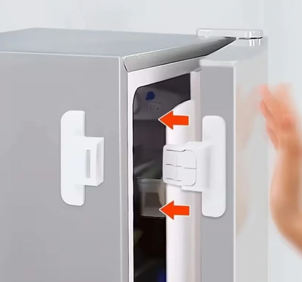 4 ADET BUZDOLABI ÇEKMECE VE DOLAP KAPAĞI ÇOCUK KİLİDİÜrün Özellikleri4 Adet Buzdolabı Çekmece ve Dolap Kapağı Çocuk Kilidi, evdeki tehlikeli alanlara çocukların erişimini engelleyerek güvenli bir yaşam alanı oluşturmak için tasarlanmış pratik bir güvenlik çözümüdür. Çift butonlu güvenlik mekanizması sayesinde kilidin açılması için iki tuşa aynı anda basılması gerekir; bu işlem yetişkinler için son derece kolayken çocukların motor becerileri bu eylemi yapmaya yeterli olmayacağı için güvenliğinizi maksimum seviyeye taşır. Buzdolabı, çekmece, gardırop, derin dondurucu veya düz yüzeyli tüm dolap kapaklarında rahatlıkla kullanılabilir ve geniş uyumluluk sunar. Güçlü yapışkan bantları sayesinde montajı delme ya da vidalama gerektirmez, mobilyalara zarar vermeden saniyeler içinde uygulanabilir. Modern, sade ve estetik tasarımı ise beyaz eşyalar ve mobilyalar üzerinde göze batmadan doğal bir görünüm sağlar. Çocuklu evler için olmazsa olmaz güvenlik önlemlerinden biridir.Paket İçeriği4 adet çocuk güvenlik kilidi.