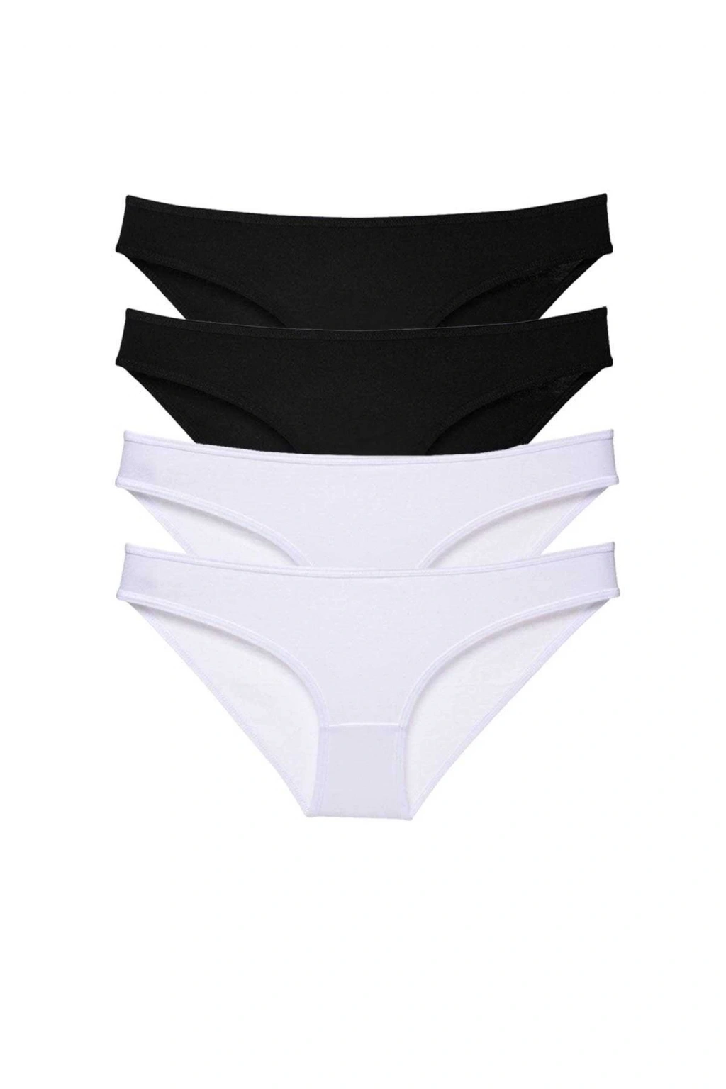 4 adet Süper Eko Set Likralı Kadın Slip Külot Siyah Beyaz