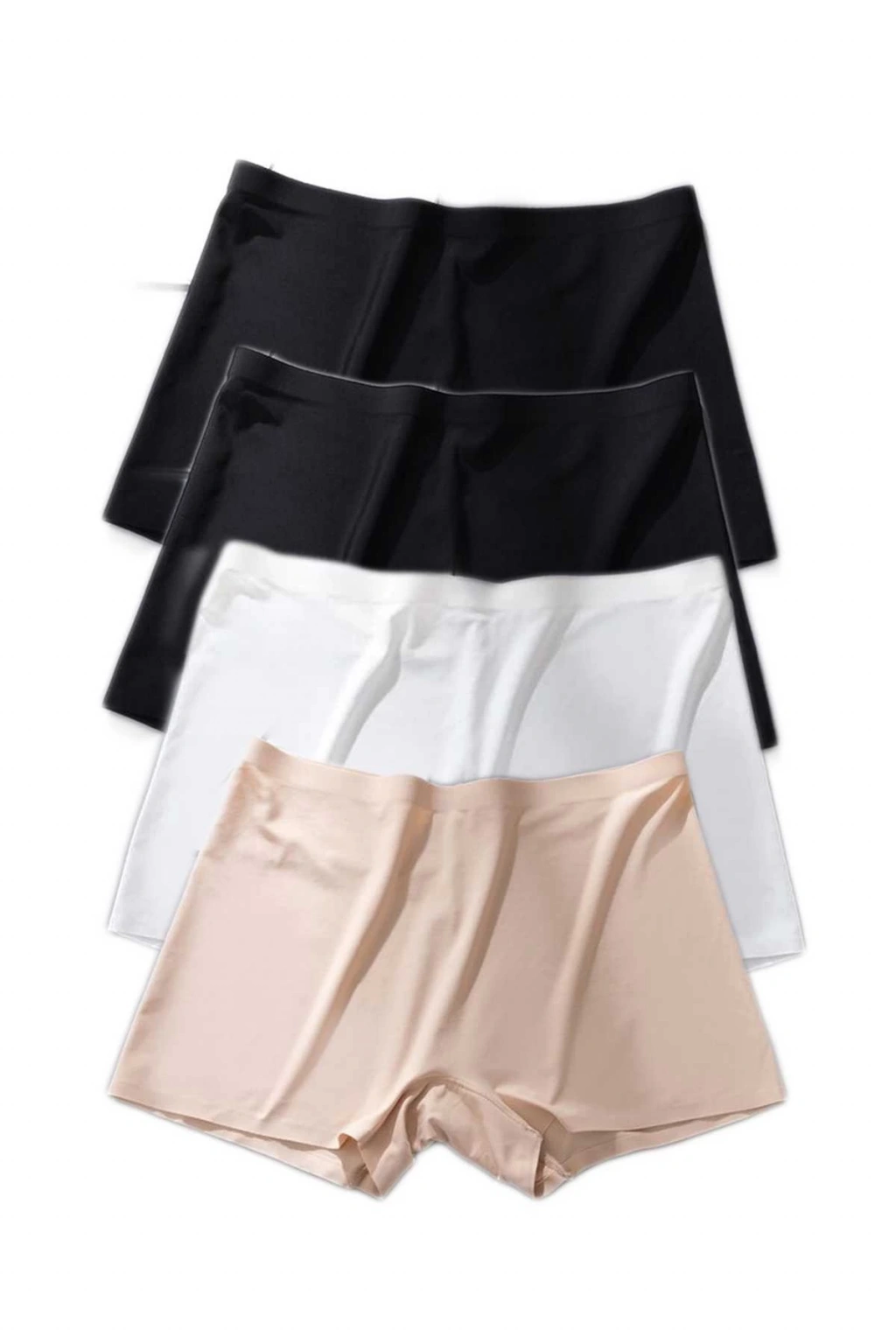 4 Adet Kadın Dikişsiz Görünmez İz Yapmaz Mini Şort Boxer Siyah Beyaz Ten