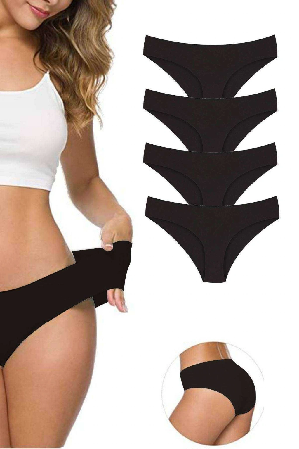4 Adet Kadın Dikişsiz Lazer Kesim Esnek İz yapmayan Külot Siyah