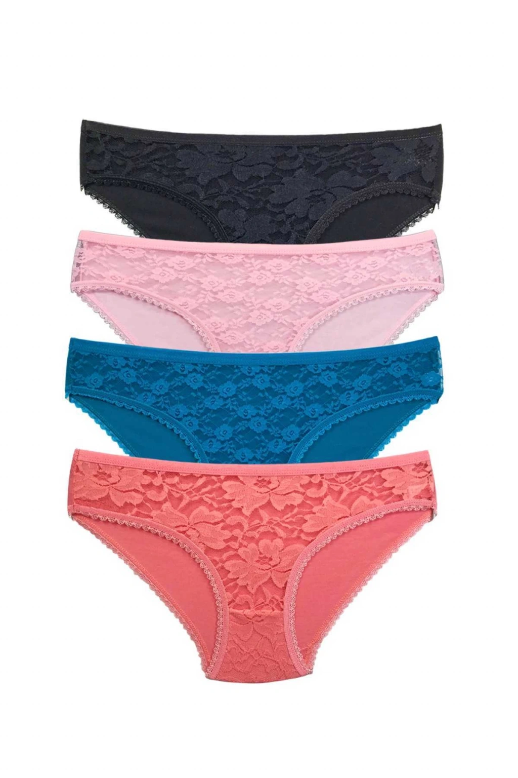 4 Adet Önü Dantelli Transparan Kadın Slip Külot S218