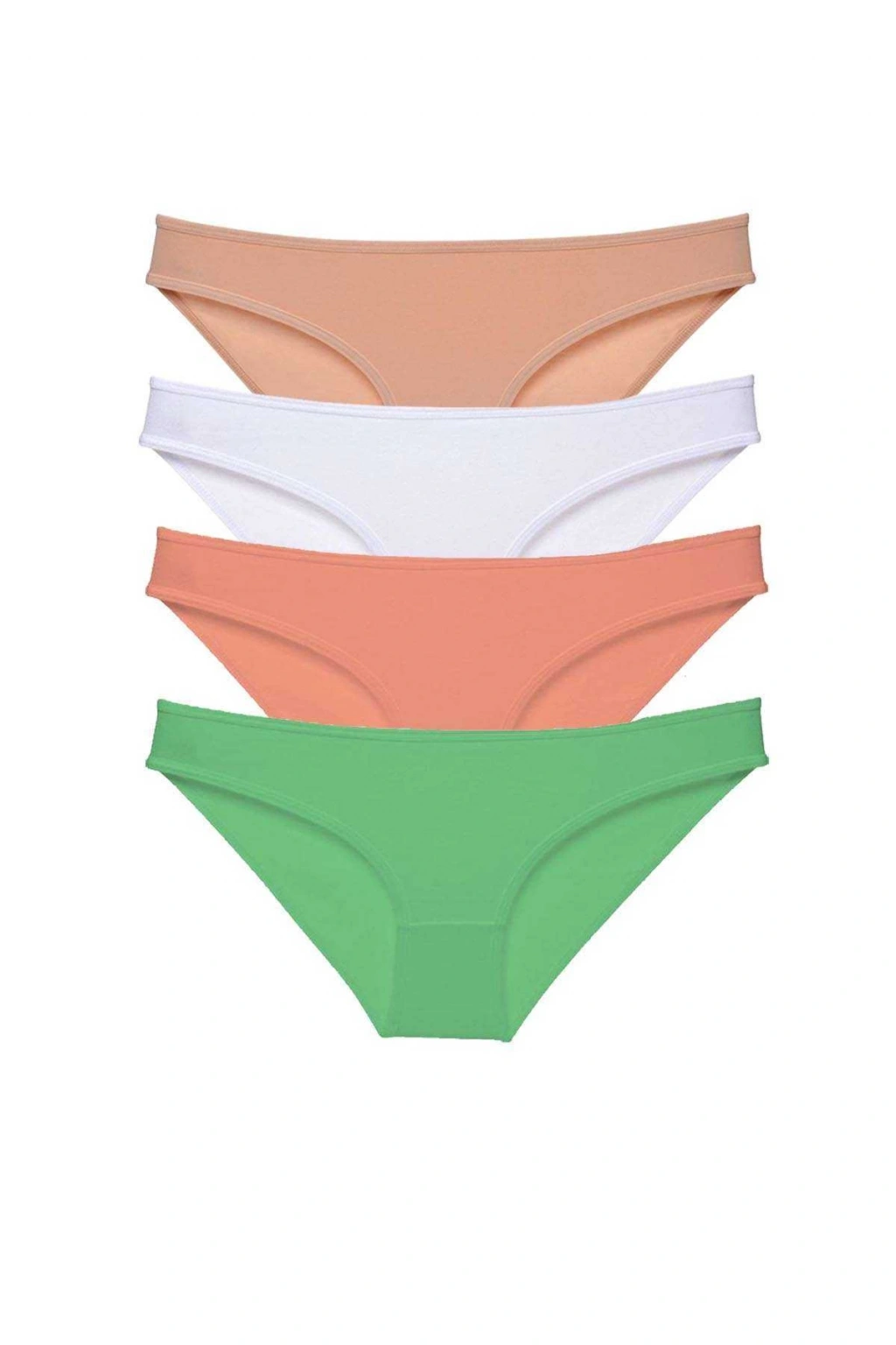 4 adet Süper Eko Set Likralı Kadın Slip Külot Ten Beyaz Pudra Yeşil