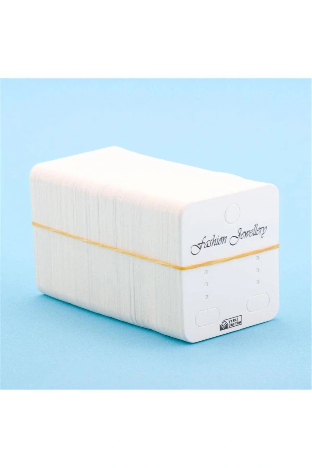 Küpe: Ürün malzemsi mukavvadan oluşmaktadır. Ürün küpe kartı olarak kullanılır. Bir balya olarak satılmaktadır. Bir balyada yaklaşık 200 adet kart bulunmaktadır. Her köşesi 5 cmdir.