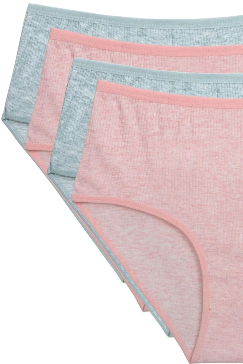 4'lü Yeni Seri Renkli Yüksek Bel Fitilli Ribana Bato Külot Şeftali Yeşil