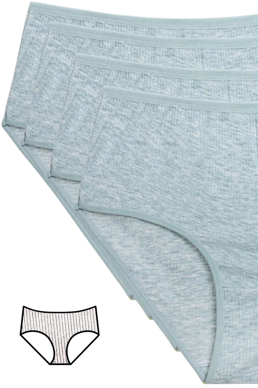 4'lü Yeni Seri Renkli Yüksek Bel Fitilli Ribana Bato Külot Yeşil