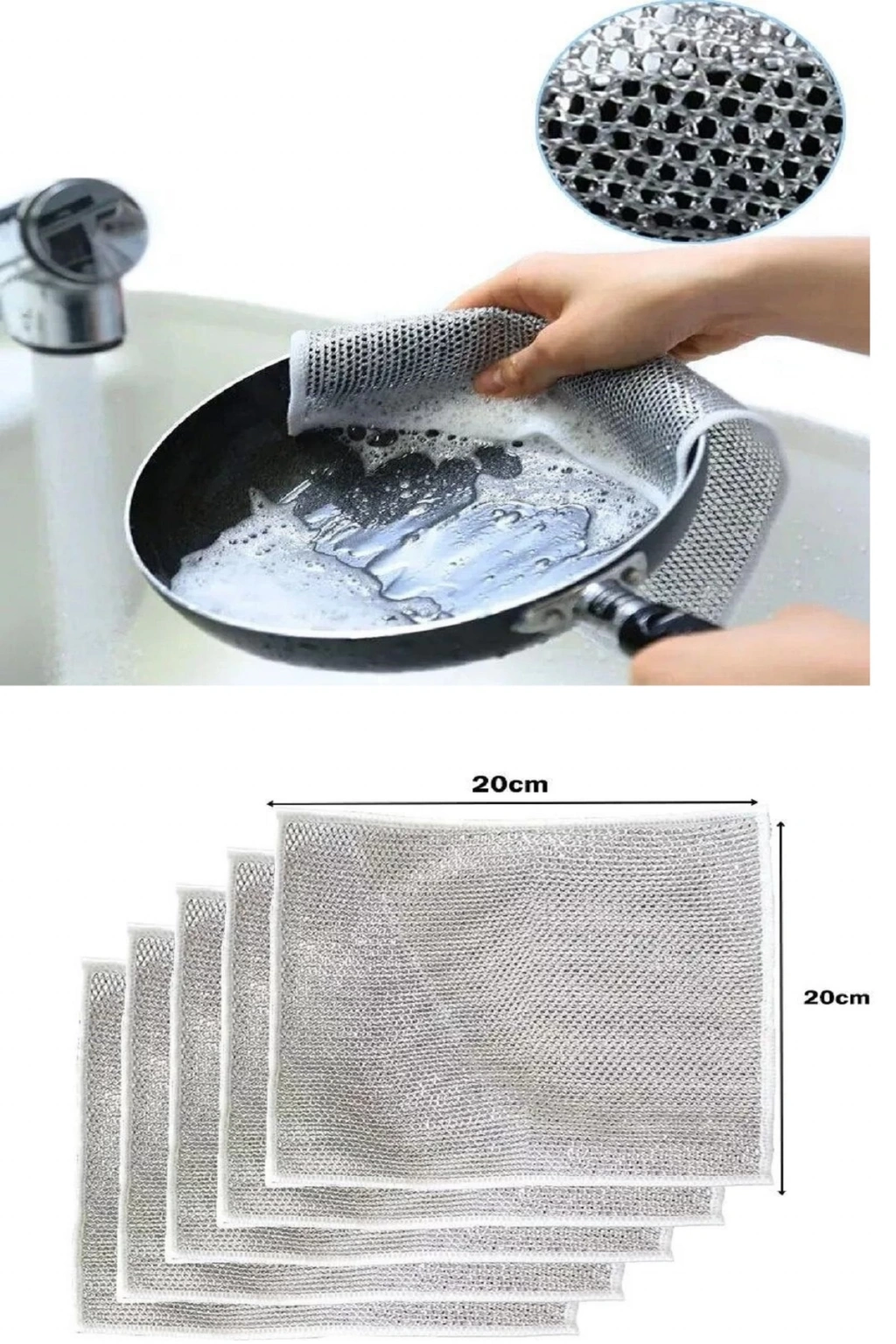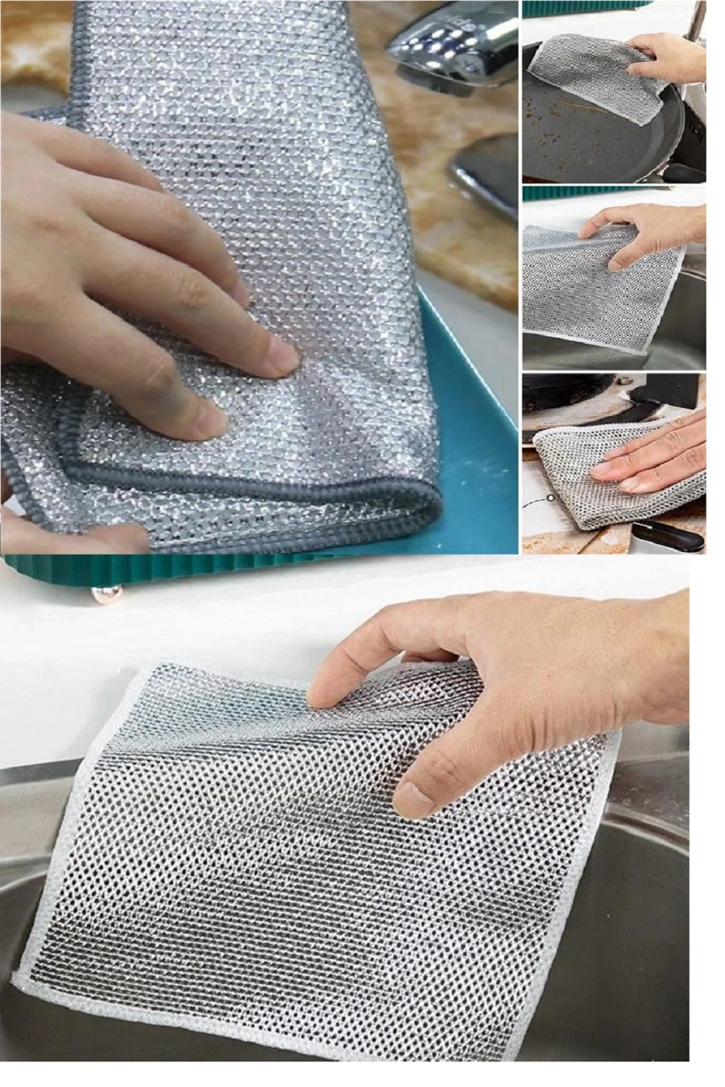 Çok Fonksiyonlu Çizilmez Tel Bulaşık Bezi Çelik Tel Bulaşık Havlusu 5 Adet Gelişmiş elmas ızgara dokuma teknolojisi ve yüksek kaliteli metal tel malzeme ile üretilen çok amaçlı tel bulaşık bezi, Tencere ve eller için güvenlidir