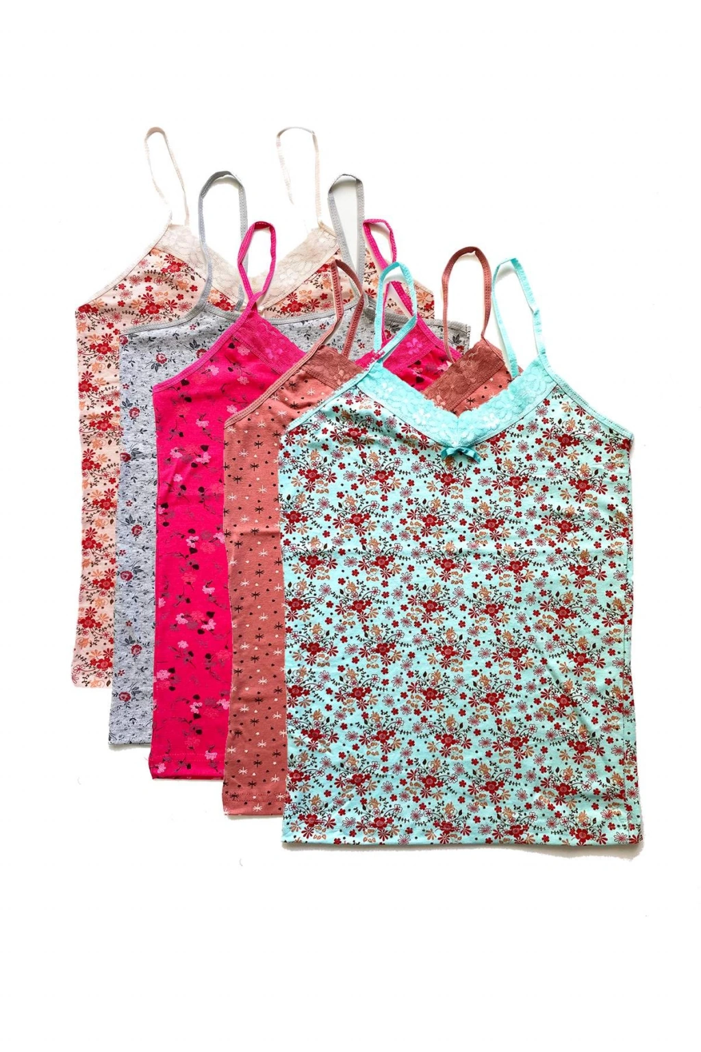 5 Adet Kadın Askılı Desenli Atlet Dantelli Empirme Pamuklu Penye D6-10