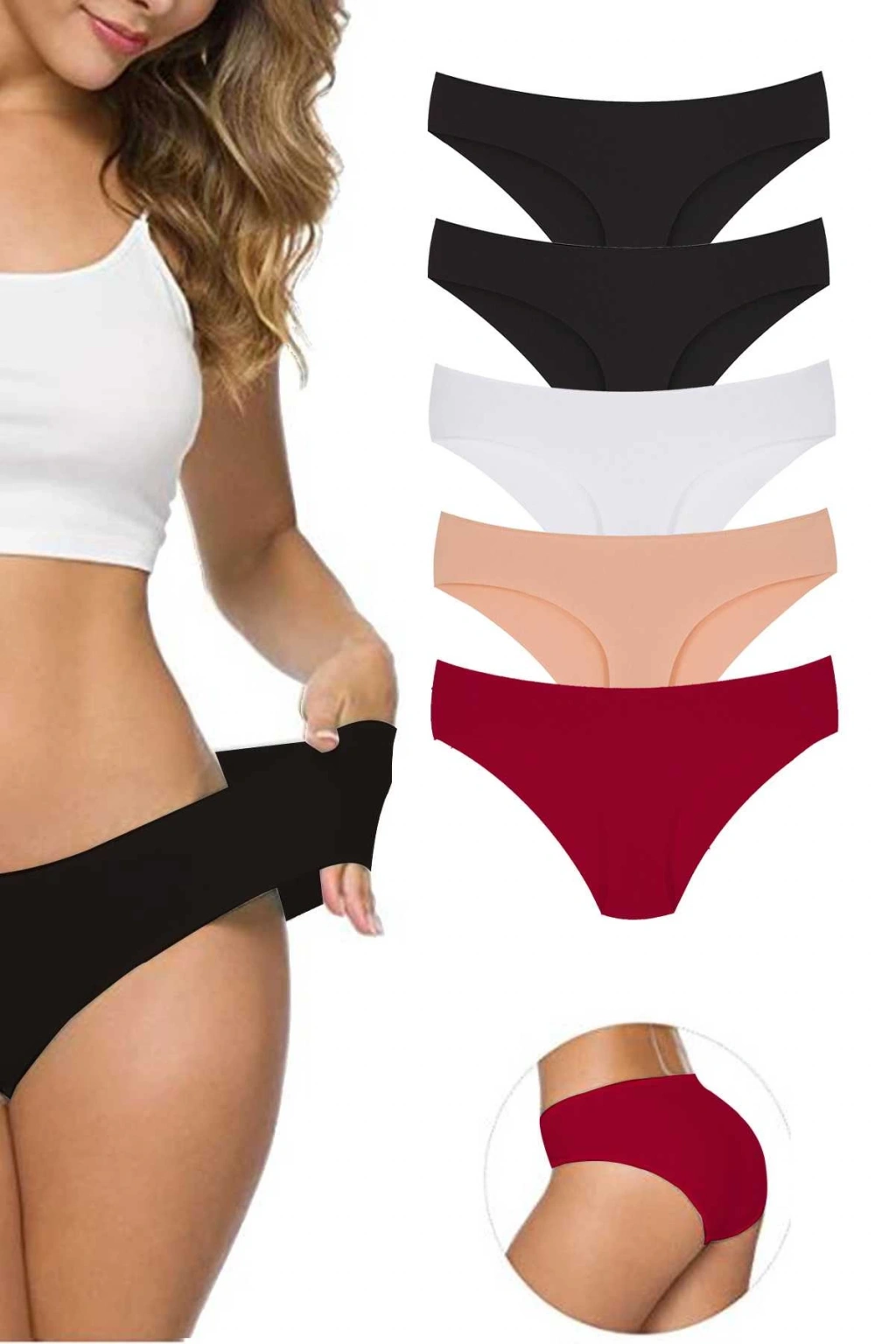 5 Adet Kadın Dikişsiz Lazer Kesim Esnek İz yapmayan Külot S5